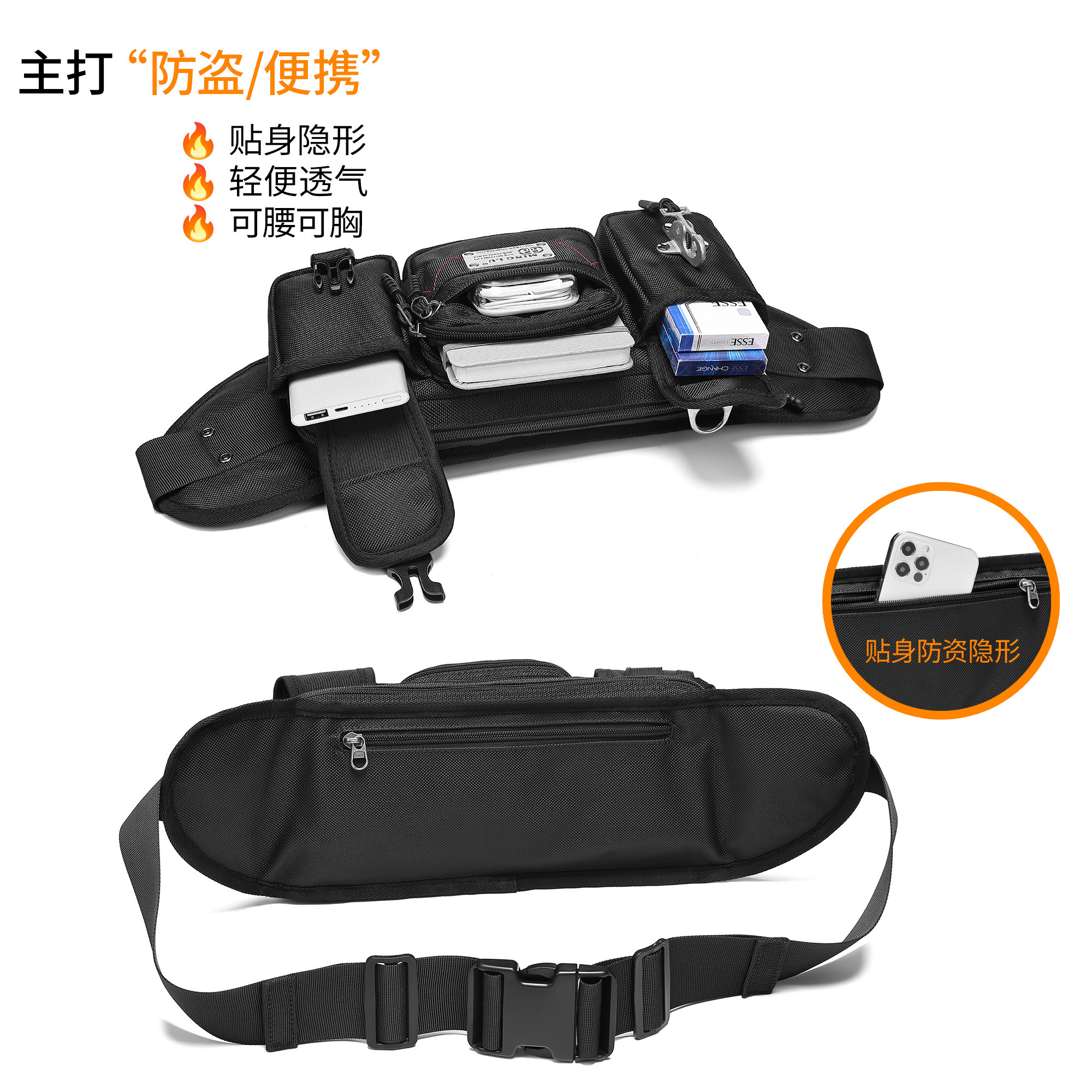 腰包男士手机运动多功能跑步斜挎户外防水大容量胸包做生意收钱包