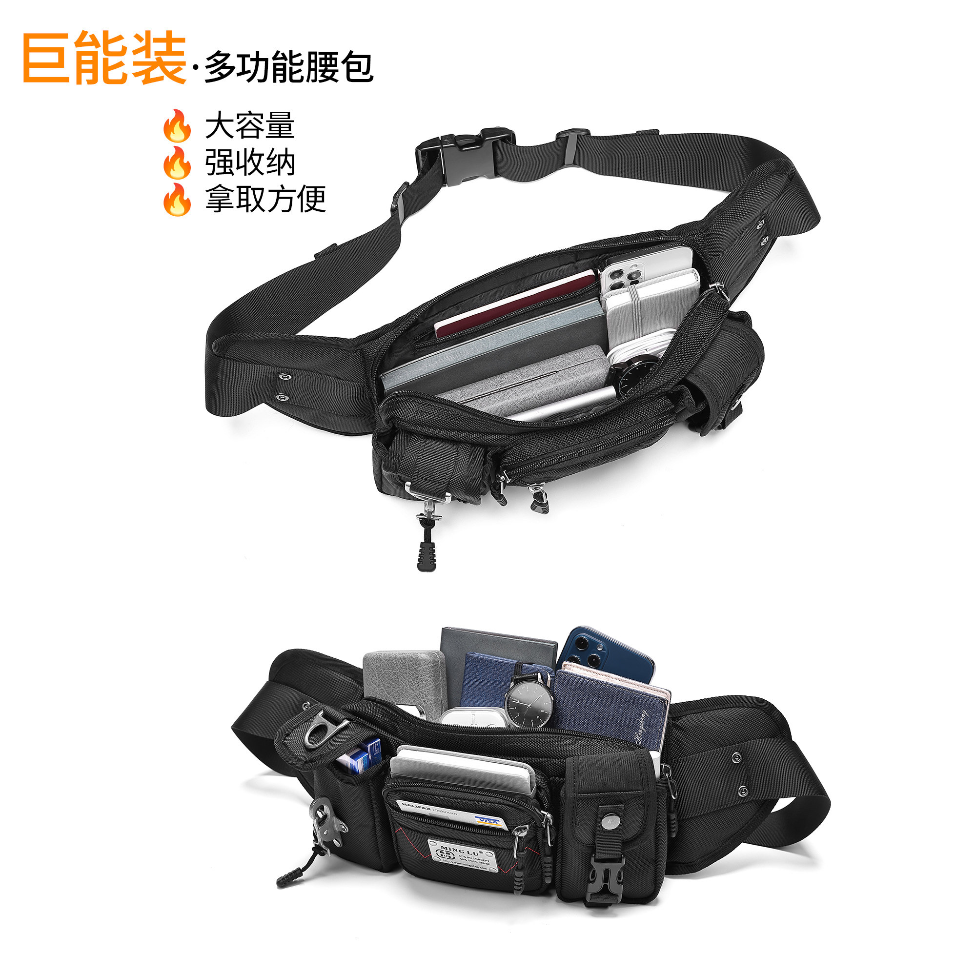 名鹿运动风多功能防水大容量腰包