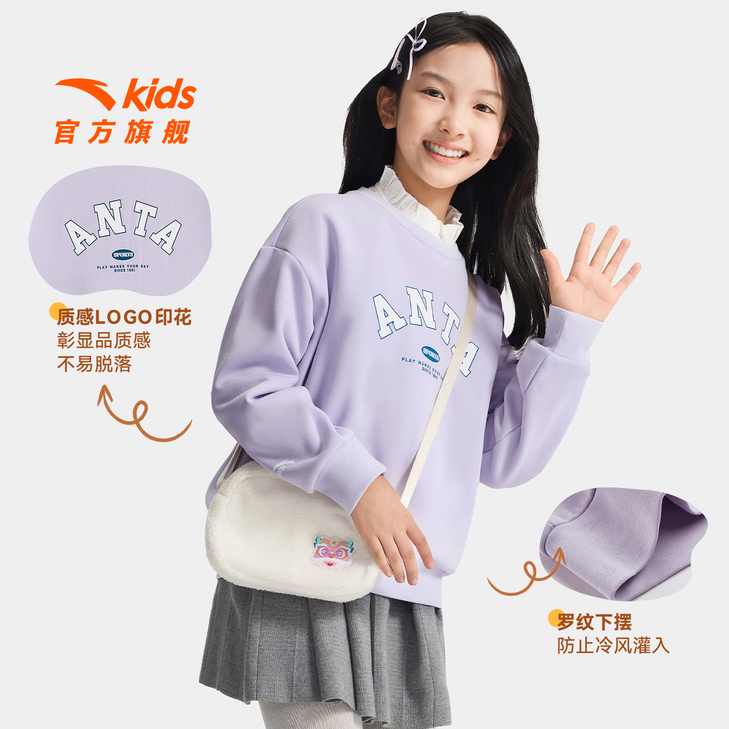 安踏儿童加绒卫衣女童套头衫2025年秋冬款上新舒适保暖中大童卫衣
