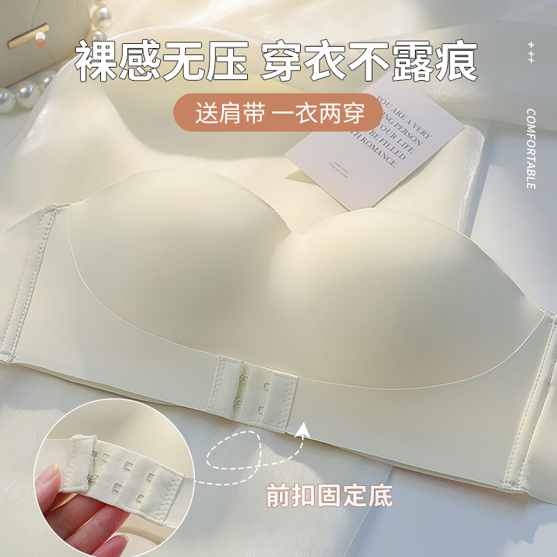 前扣无肩带抹胸内衣女小胸聚拢防滑无痕裹胸隐形美背文胸罩不会掉