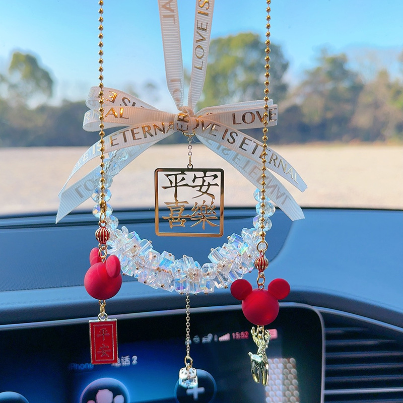 平安喜乐汽车挂件2025新款车载后视镜水晶车内挂饰高级感摆件女生