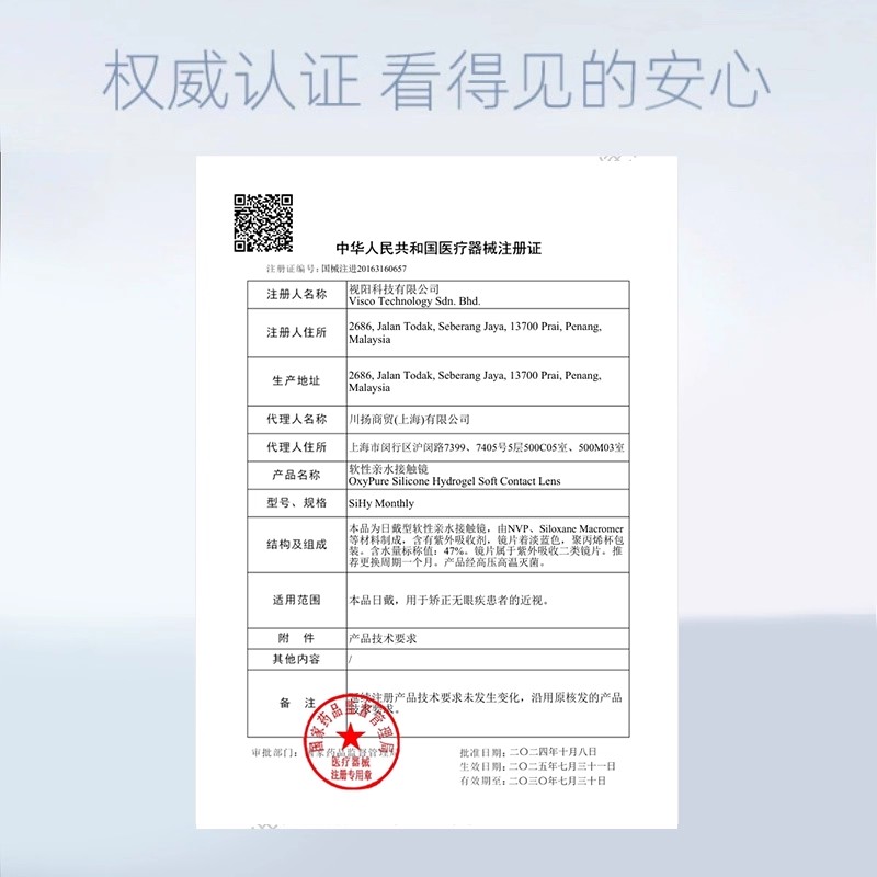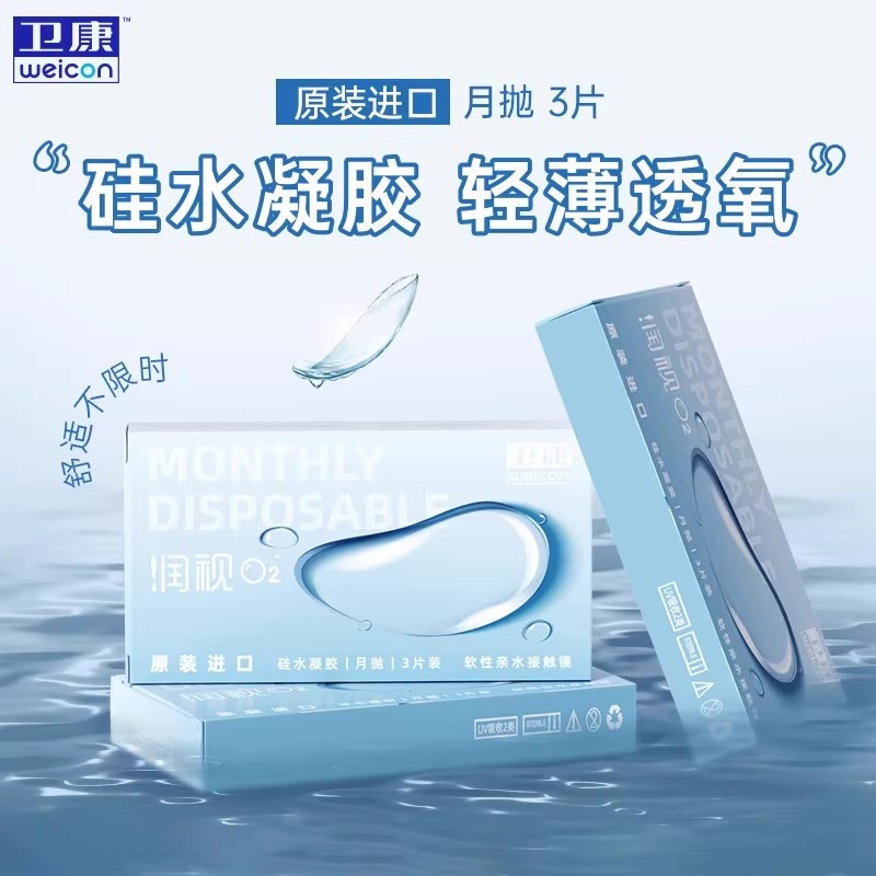 卫康润视O2硅水凝胶月抛3片装近视隐形眼镜透明高透氧舒适旗舰店