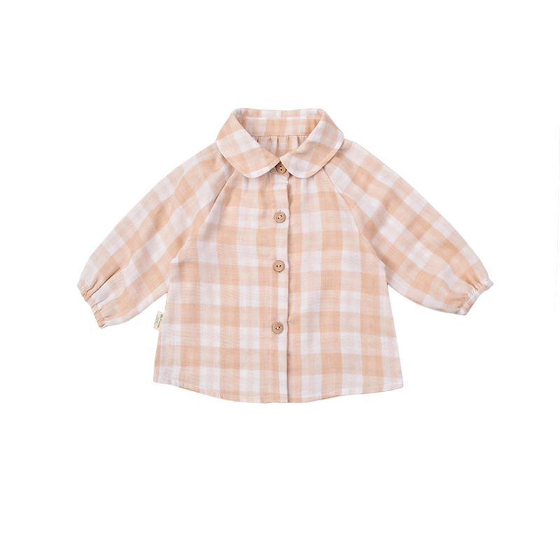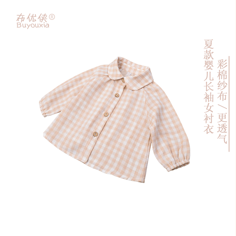 彩棉宝宝衬衫女童长袖婴儿夏款薄纯棉纱布格子小童洋气春秋防晒衣