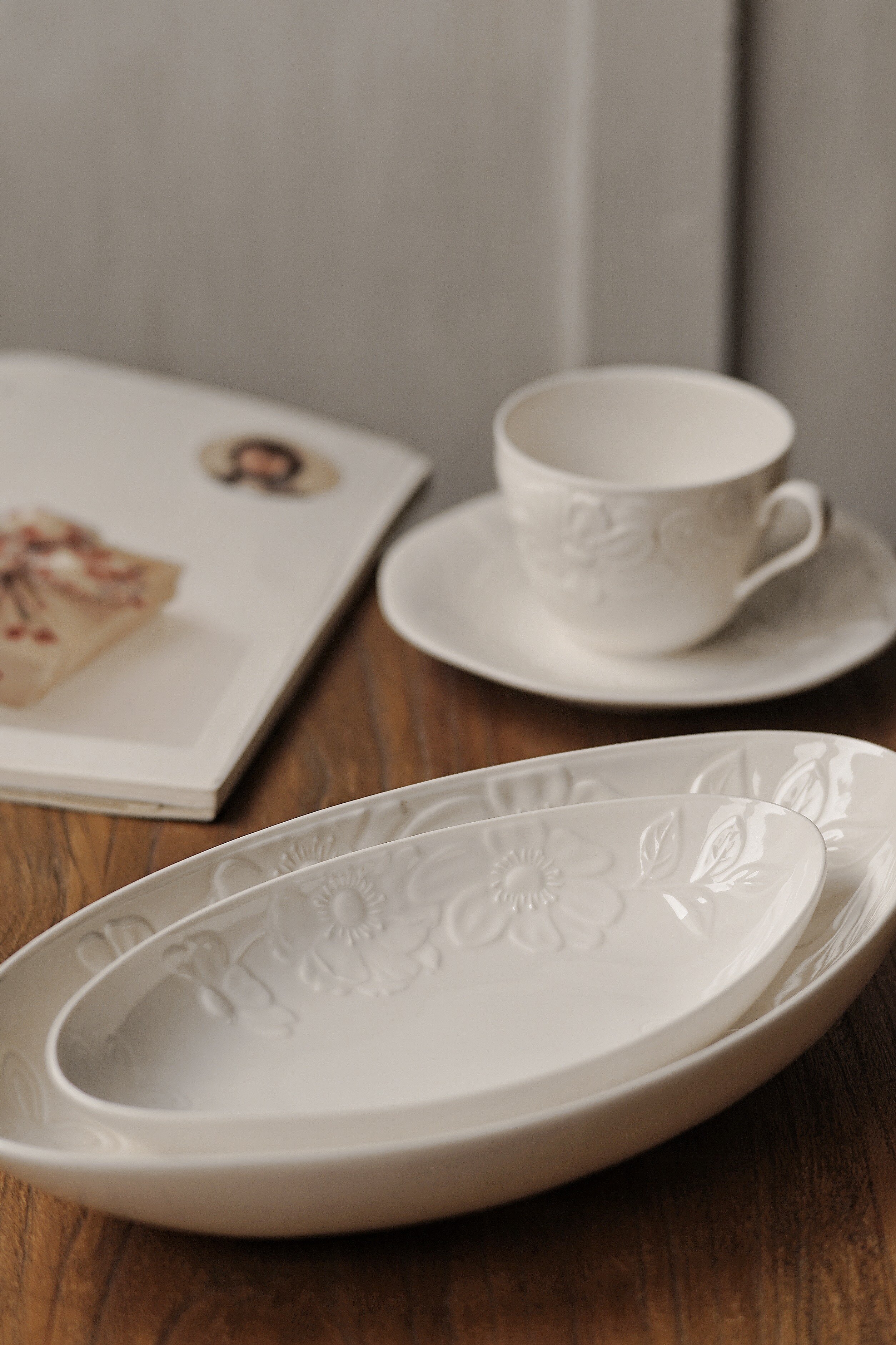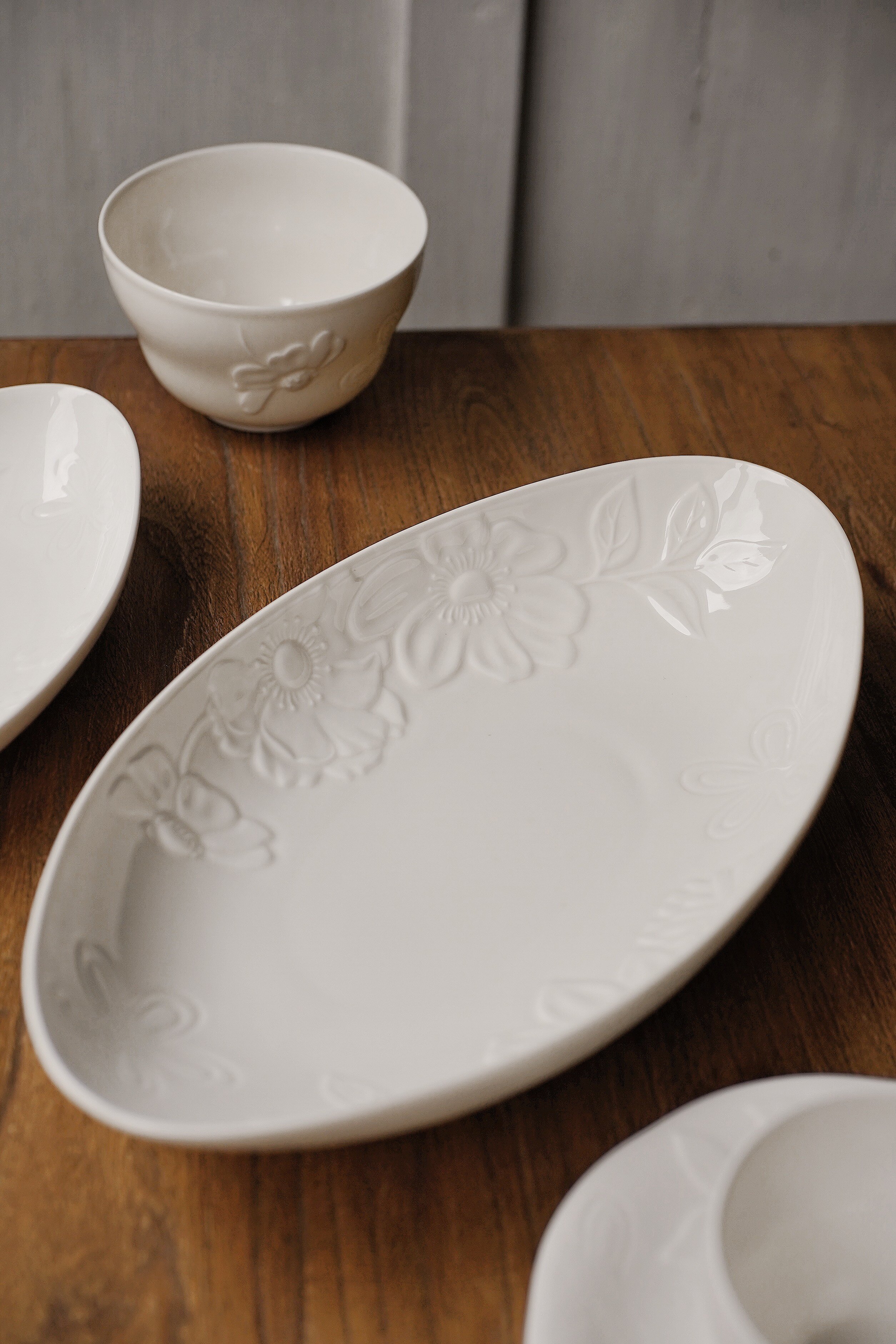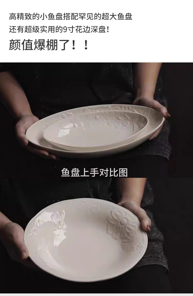 2025新款骨瓷餐具整套景德镇碗盘高级感纯白浮雕碗碟套装家用轻奢