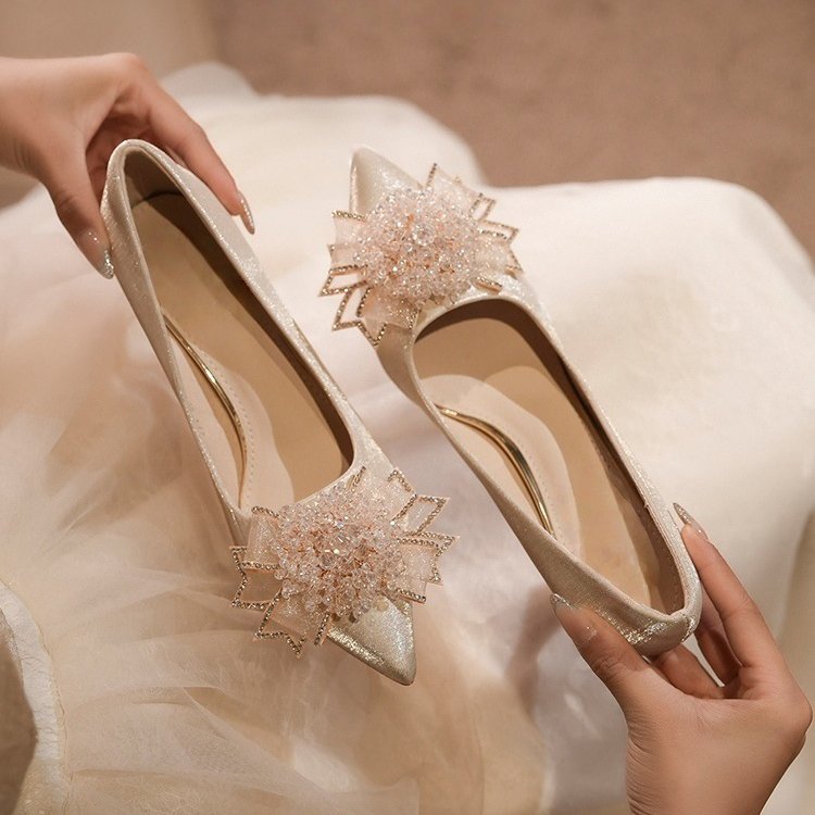 绝美水晶婚鞋女2025新款白色婚纱两穿新娘鞋法式尖头不累脚高跟鞋