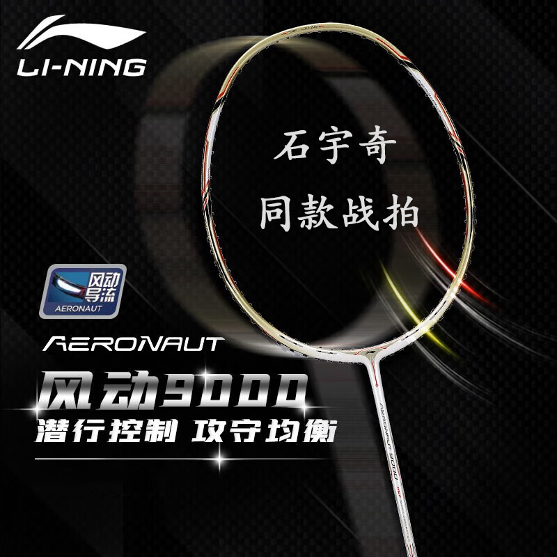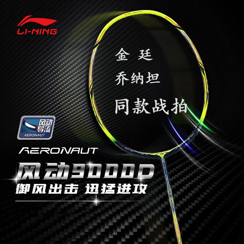 正品李宁羽毛球拍风动9000进攻型专业比赛单拍全碳素纤维明星同款