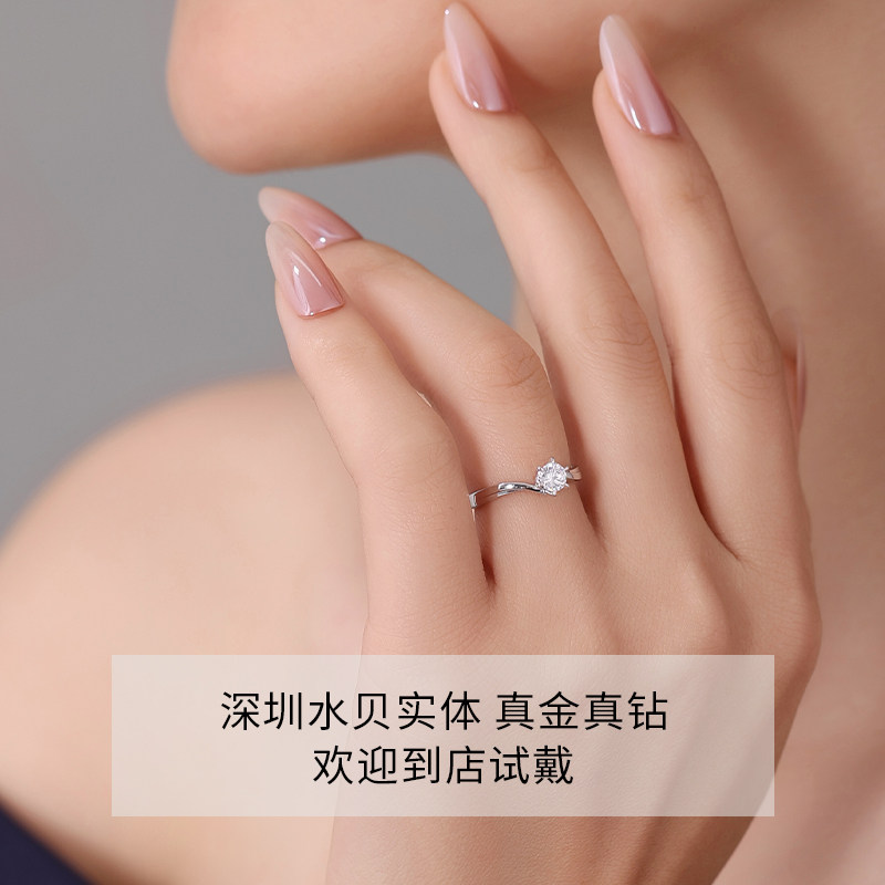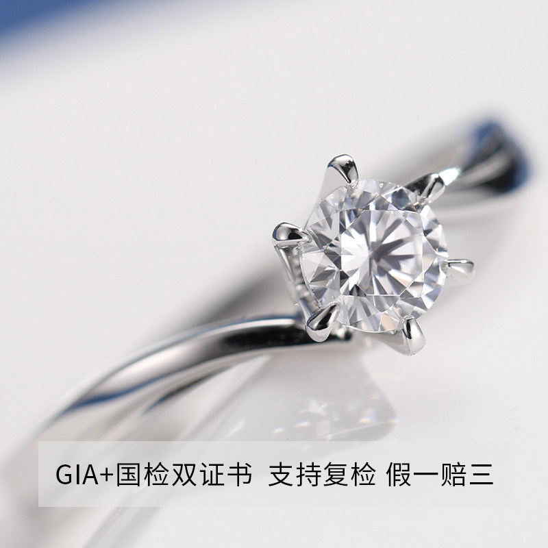 18K金天然真钻戒指女经典小幸运款钻戒GIA钻石一克拉结婚求婚礼物