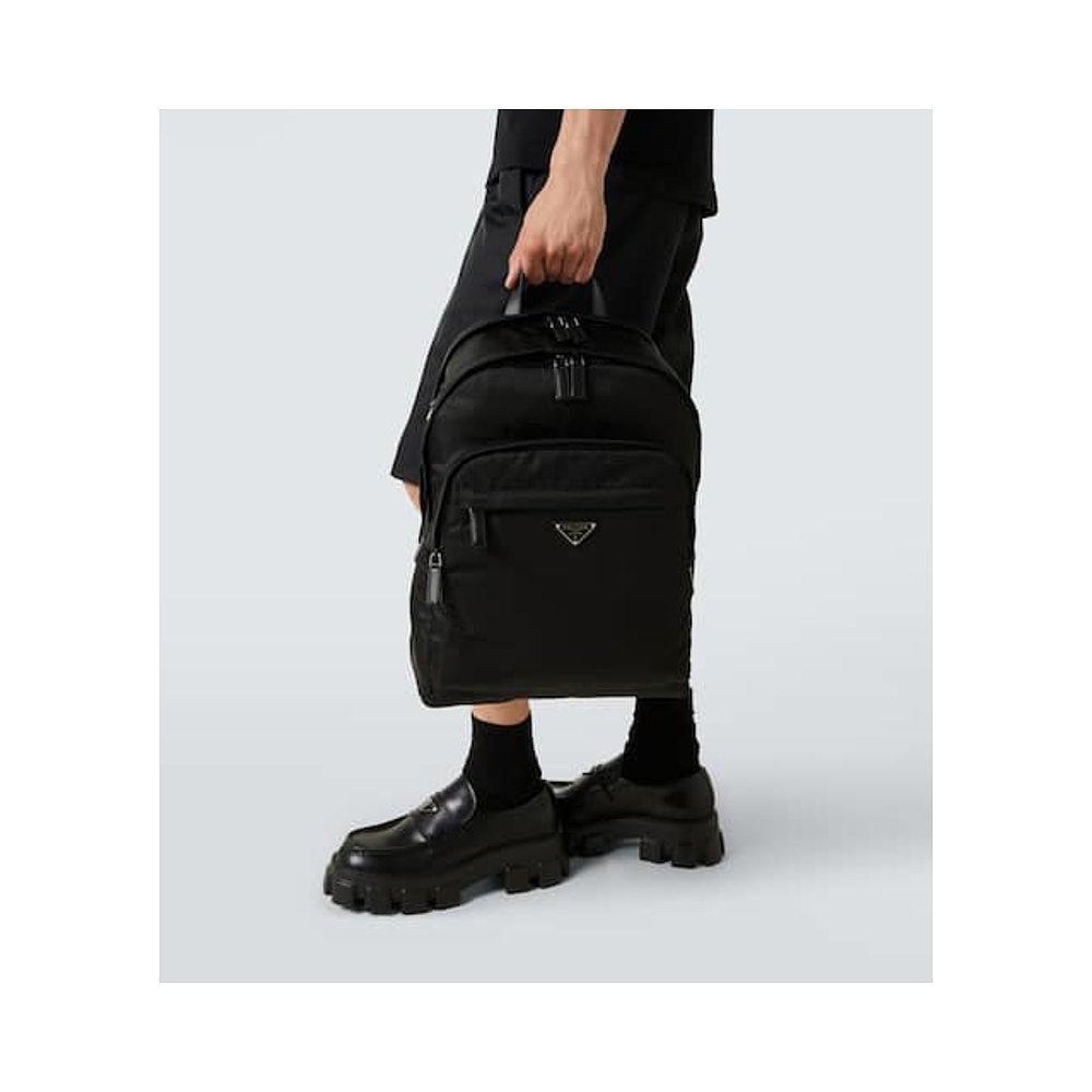1h可退 香港直邮Prada 普拉达 男士 Re-Nylon 皮革饰边背包双肩包