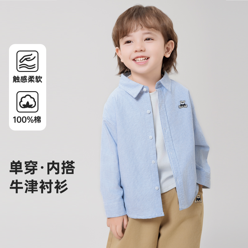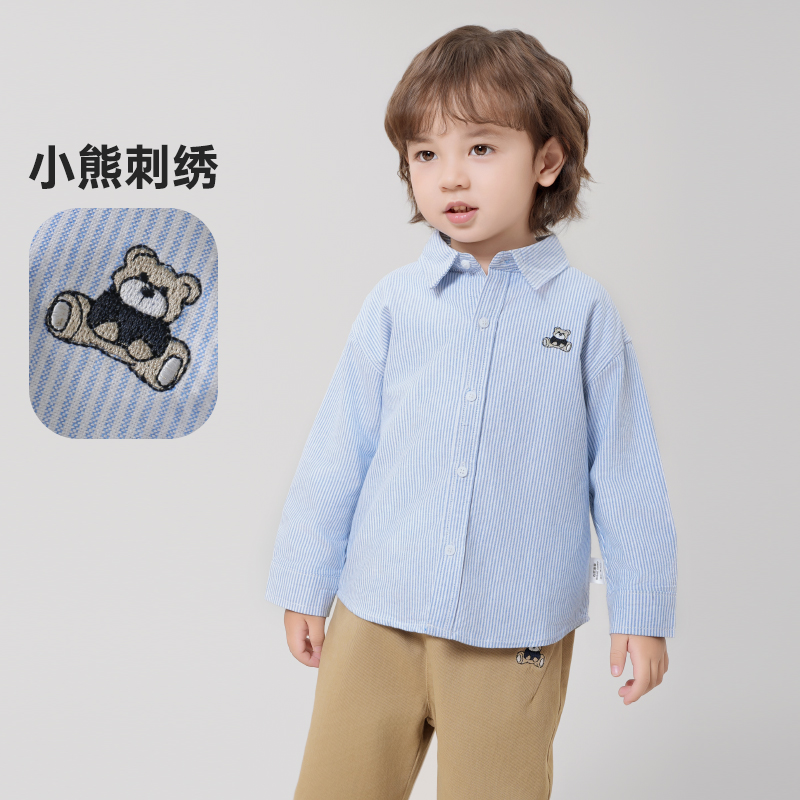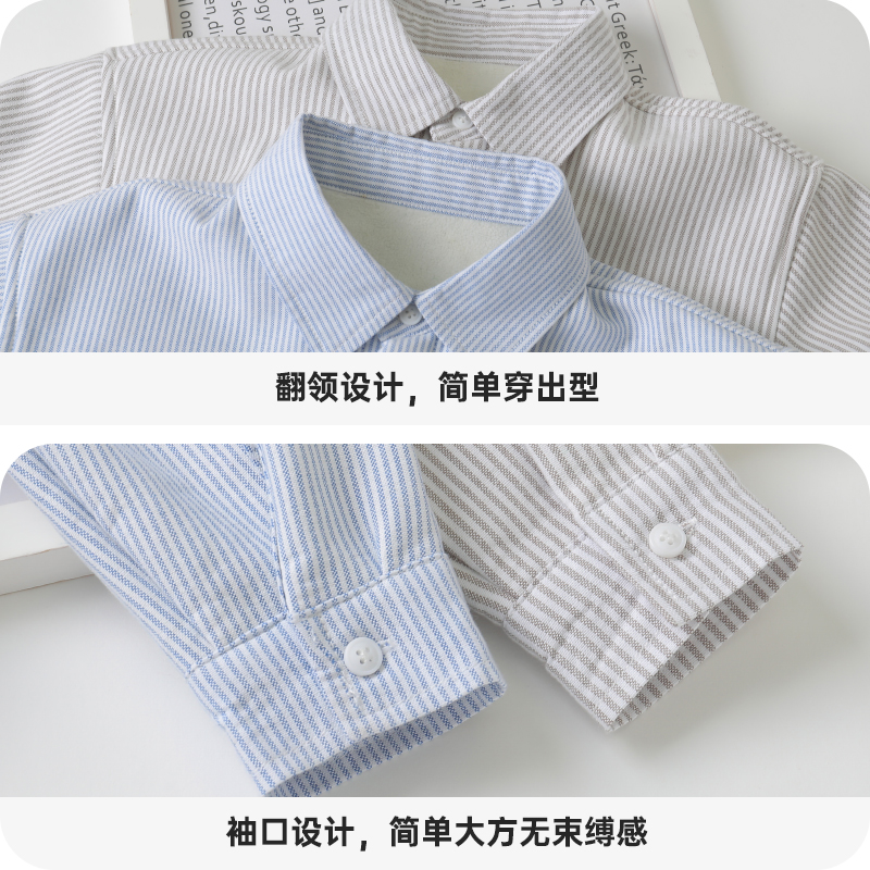 右欧男童衬衫秋冬新款儿童条纹卡通刺绣宽松加绒保暖衬衣宝宝上衣