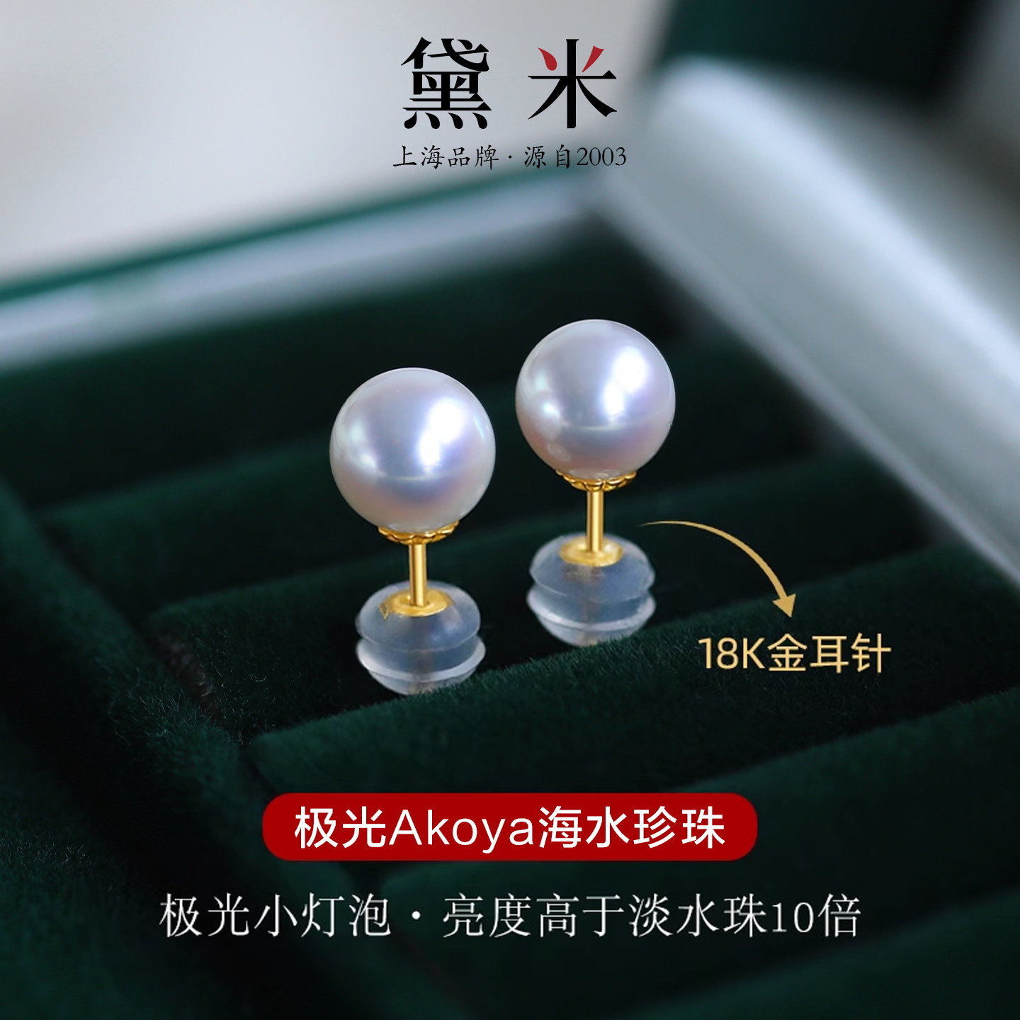 黛米简耀 极光akoya海水珍珠耳钉18K金耳饰正圆小灯泡耳环-配证书