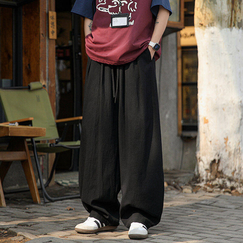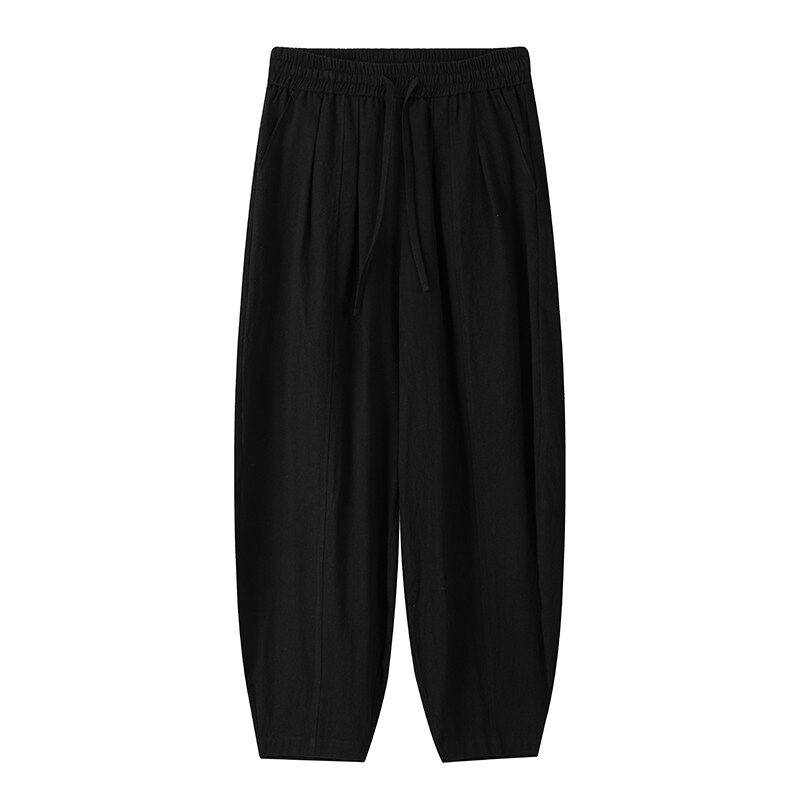 棉麻裤子男夏季薄款宽松阔腿弯刀裤加肥加大码灯笼裤直筒休闲长裤