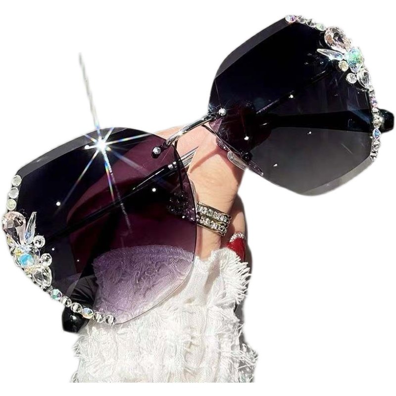 个性女士无框切边镶钻太阳镜