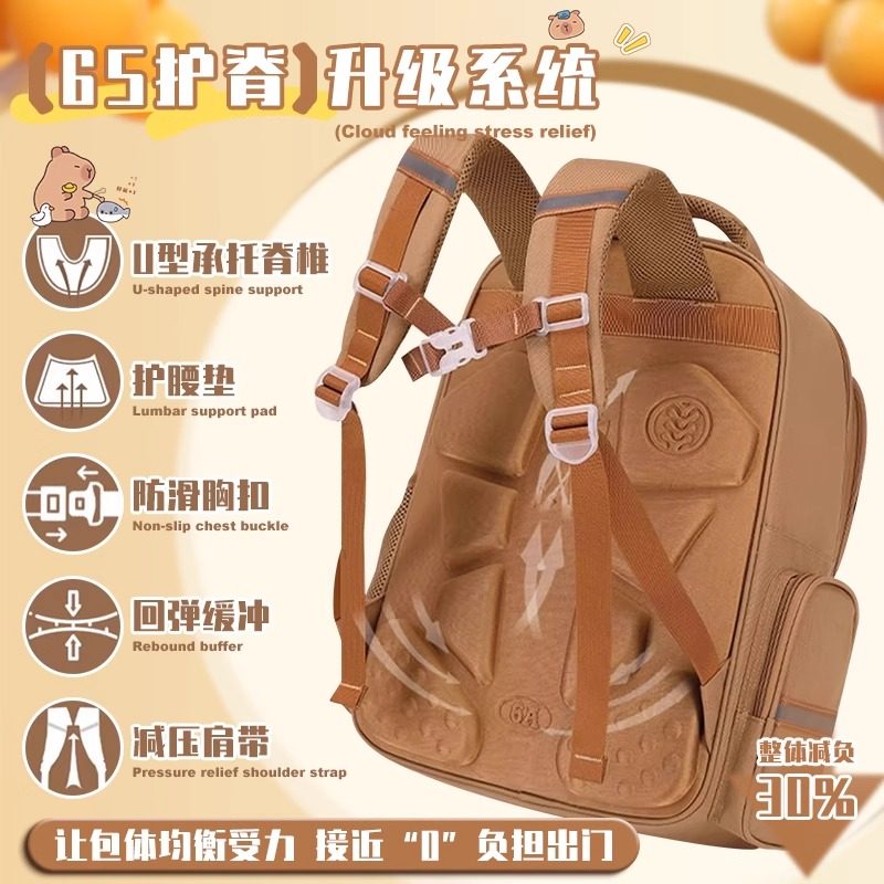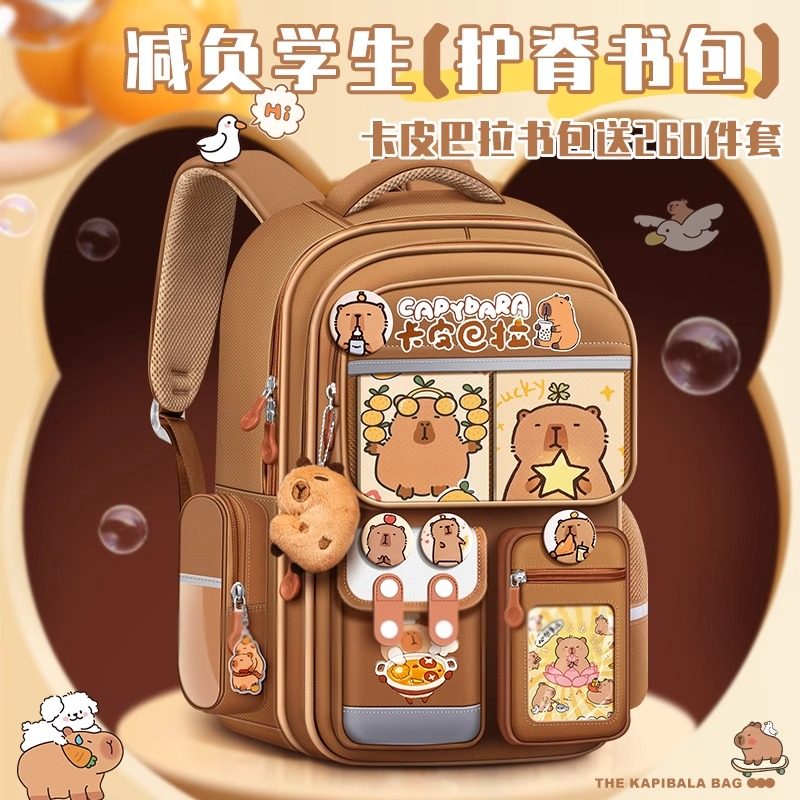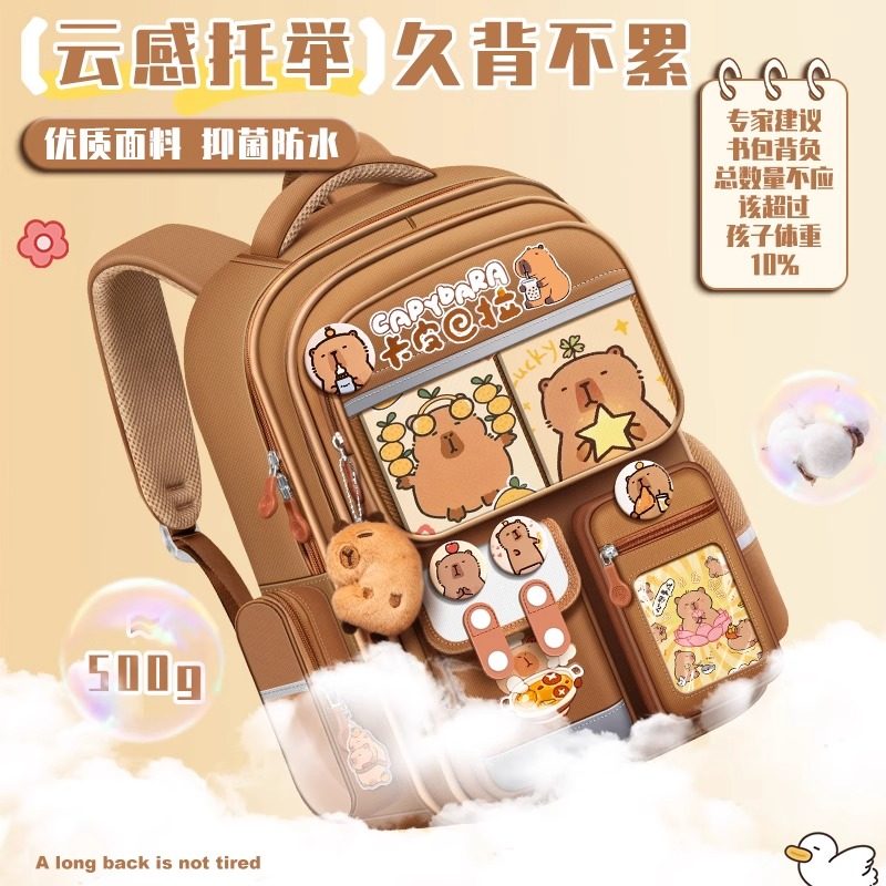 高颜值新款小学生卡皮巴拉书包正版小背包女生大容量可藏零食立体轻便减负卡比巴拉的儿童背包新书包双肩女孩
