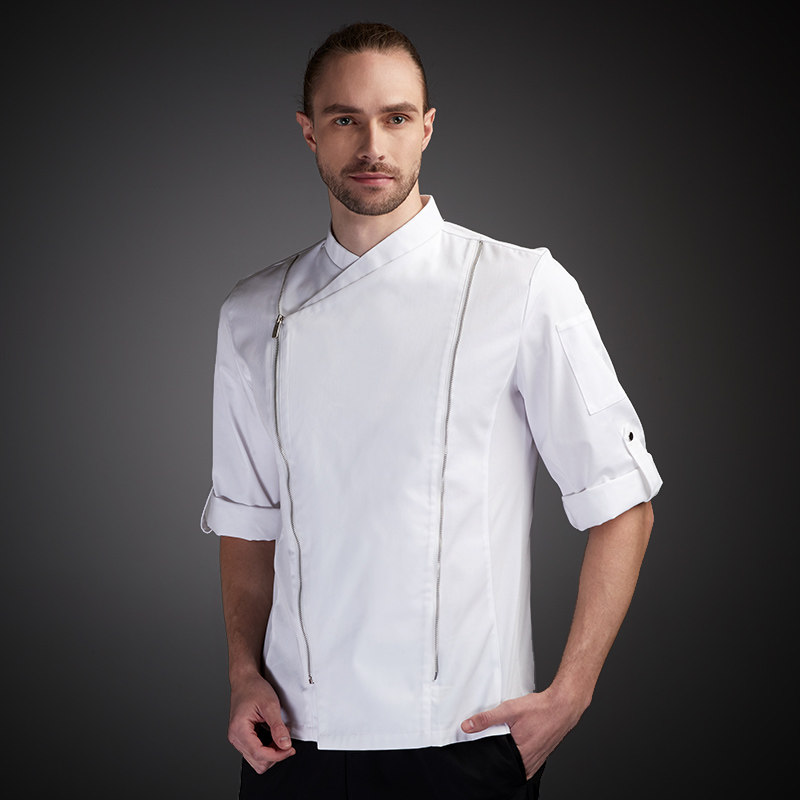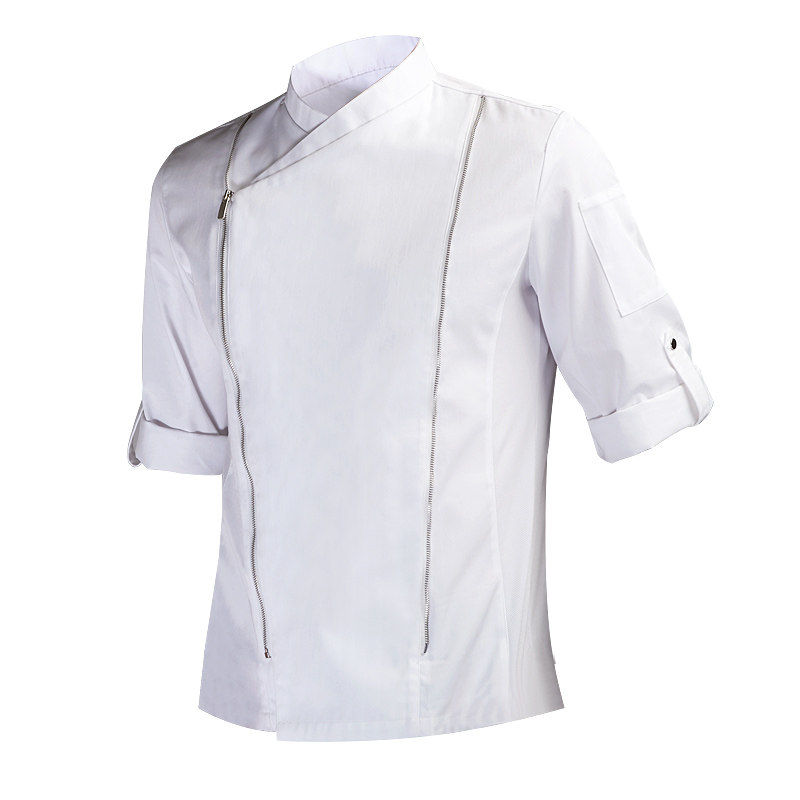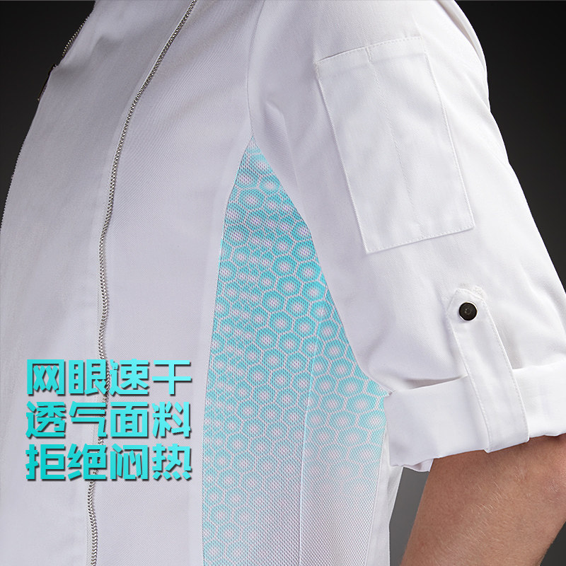 厨师长工作服男短袖夏季薄款透气网修身酒店餐厅后厨调节袖厨师服