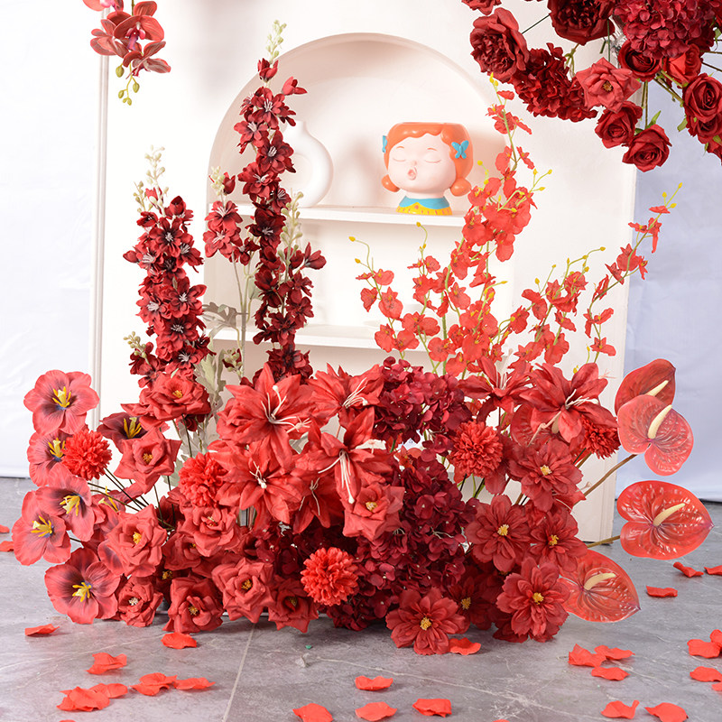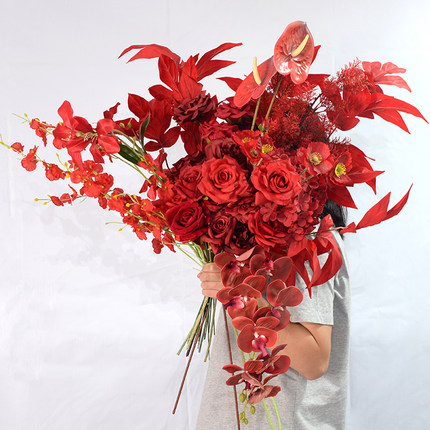 红色仿真花材假花束手工布艺玫瑰兰花插花现代简约室内装饰布置花