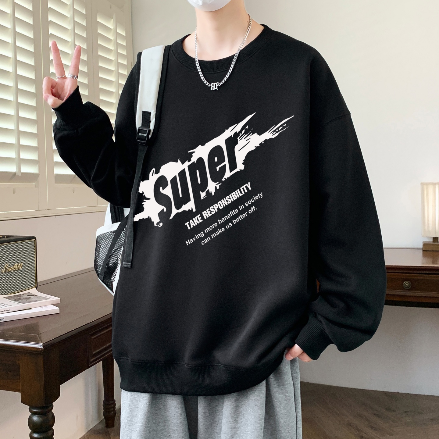春秋季长袖t恤男孩13-15岁初高中学生潮流帅气卫衣14大童圆领上衣