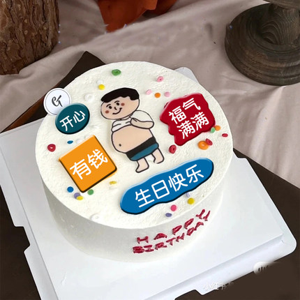 小红书网红手绘大肚腩爸爸生日蛋糕巧克力转印纸胖子烘焙装饰