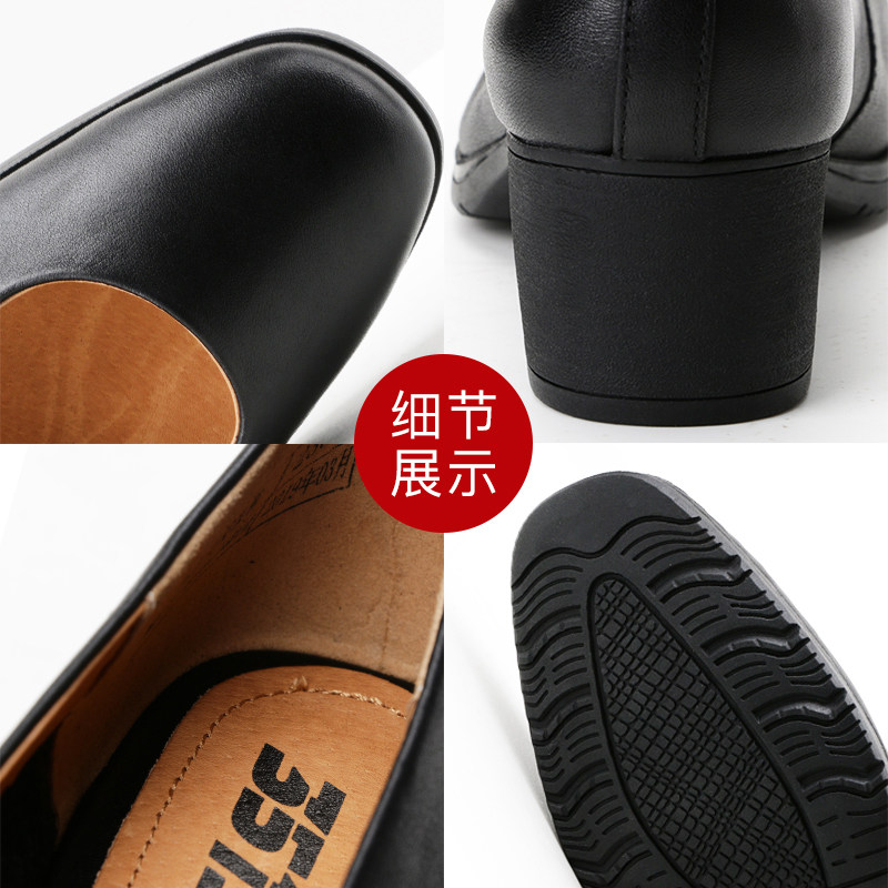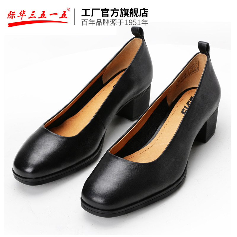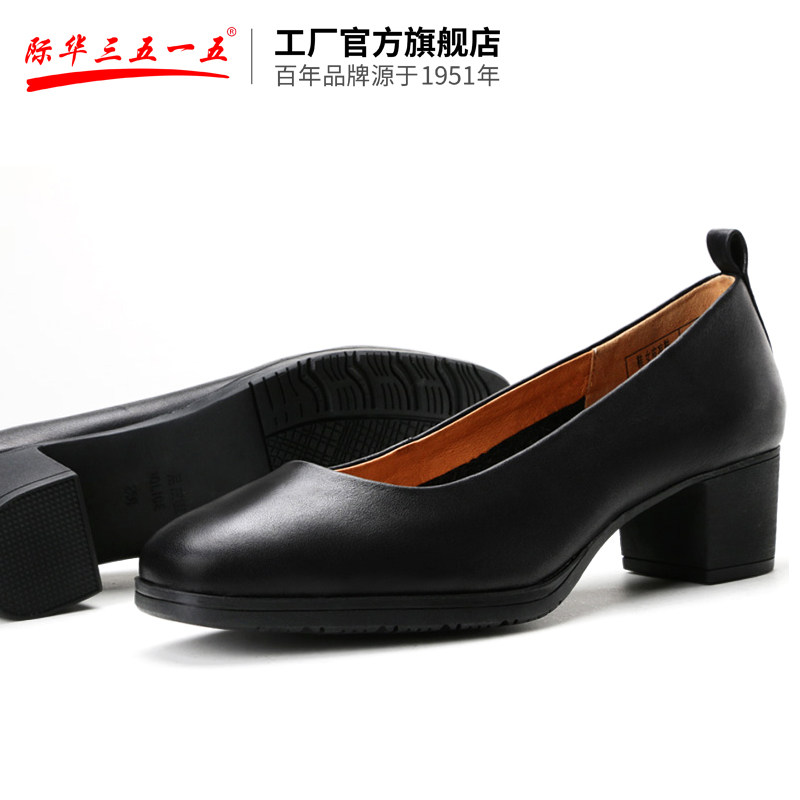 际华3515强人皮鞋春夏季中跟单鞋舒适女鞋尖头高跟鞋黑色工作鞋子