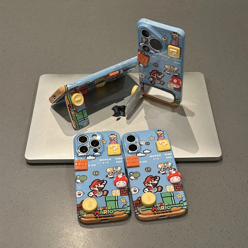 蘑菇马里奥支架新款适用苹果16pro手机壳iphone17max小米15华为mate70pura80k60nova13荣耀300vivox100note14