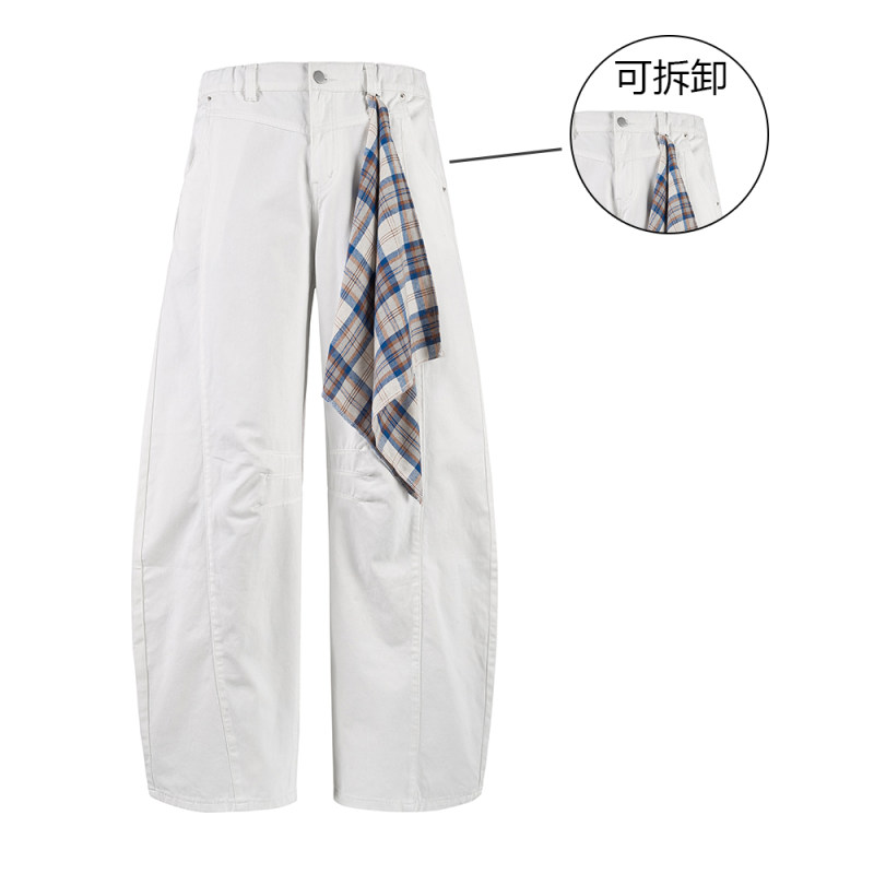 纯棉白色薄款美式复古夏季弯刀牛仔裤男做旧宽松垂感镰刀裤方巾