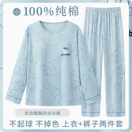 纯棉甜美宽松春秋款两件套女长袖长裤大码家居服套装休闲内衣睡衣