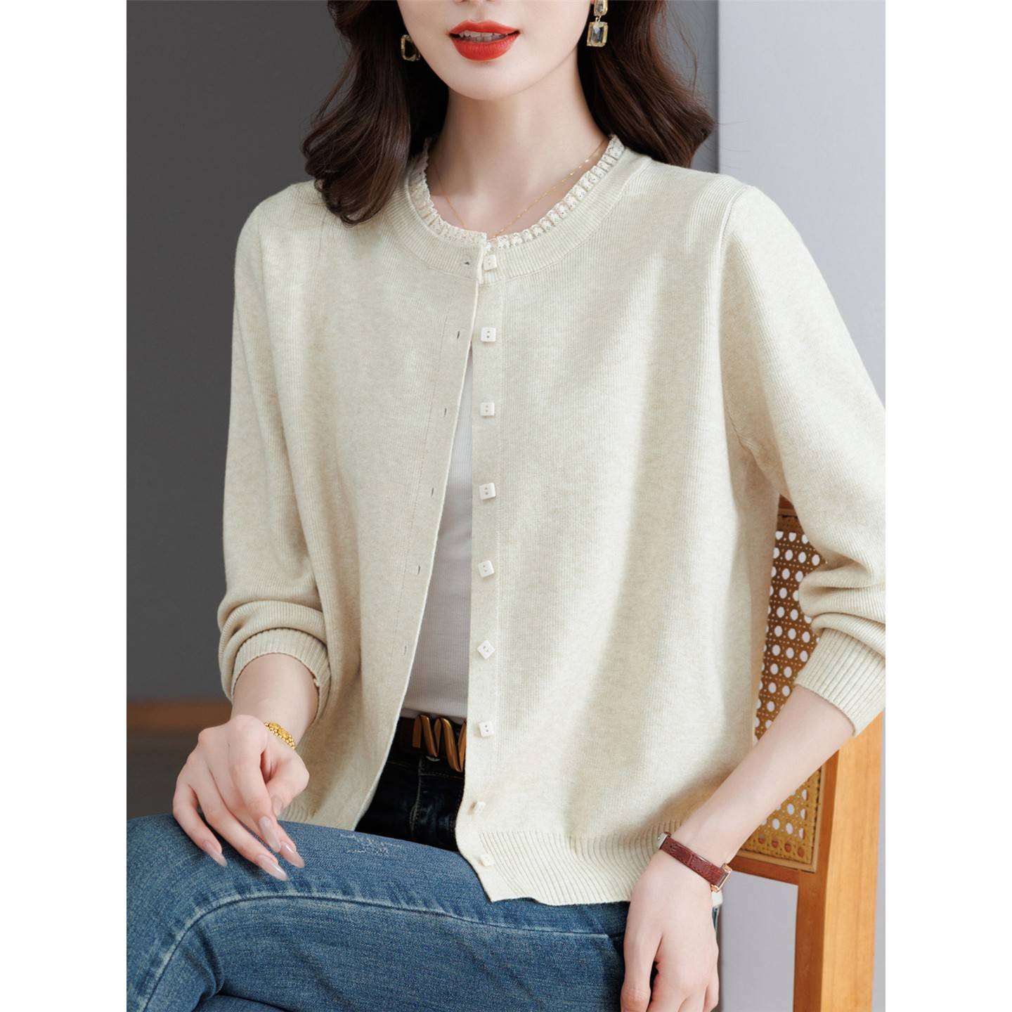木耳领蕾丝开衫针织外套女春秋2025新款百搭宽松短外搭薄毛衣披肩