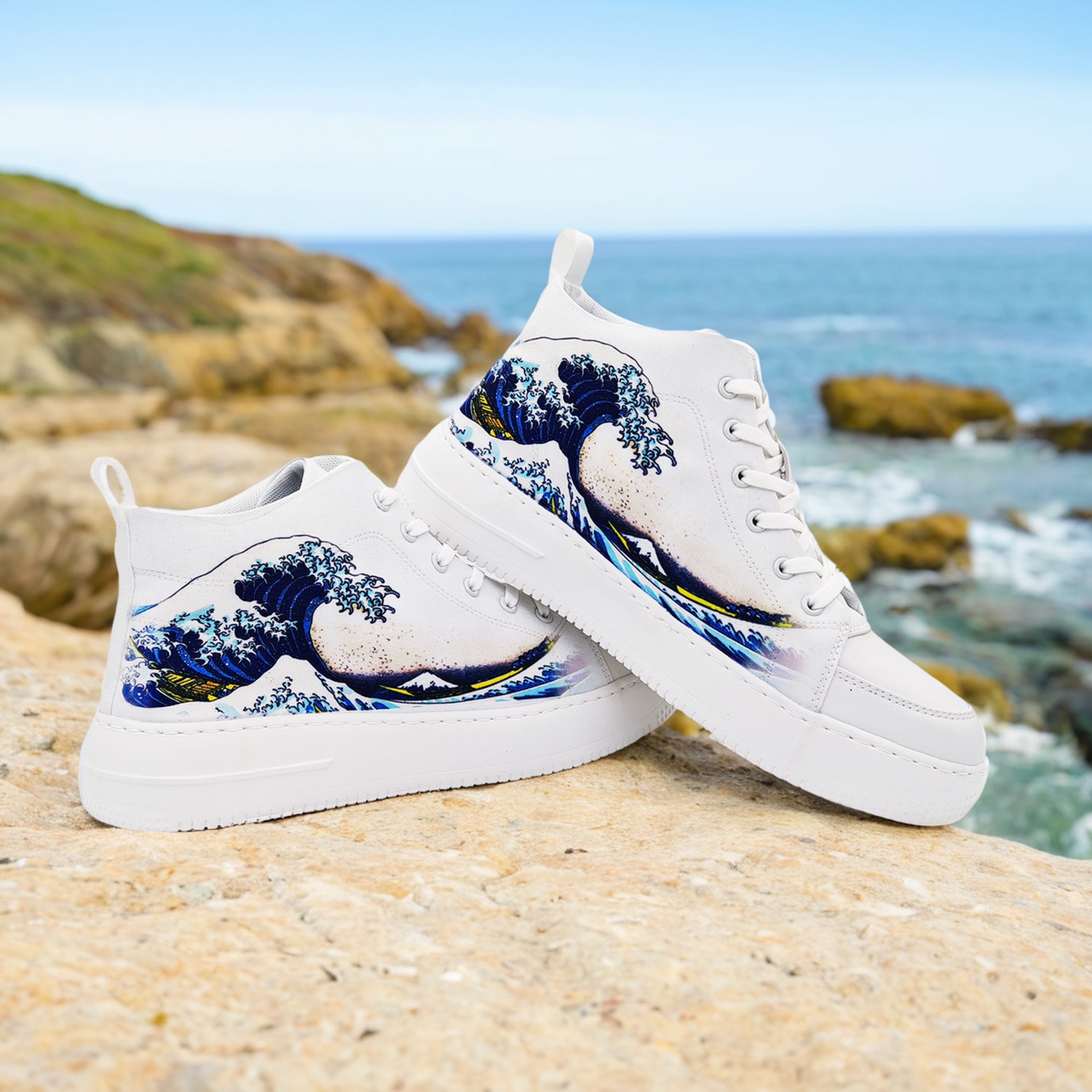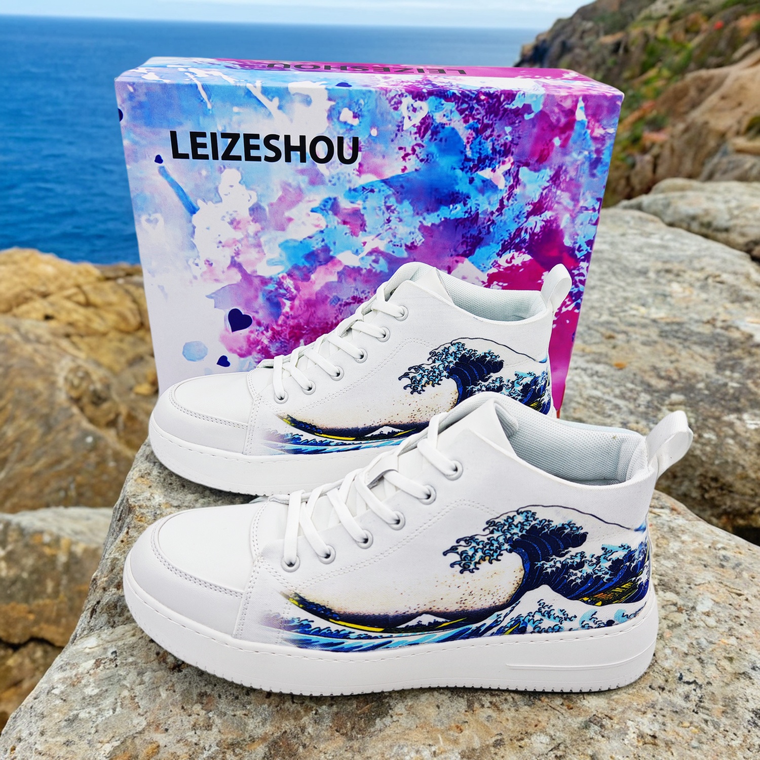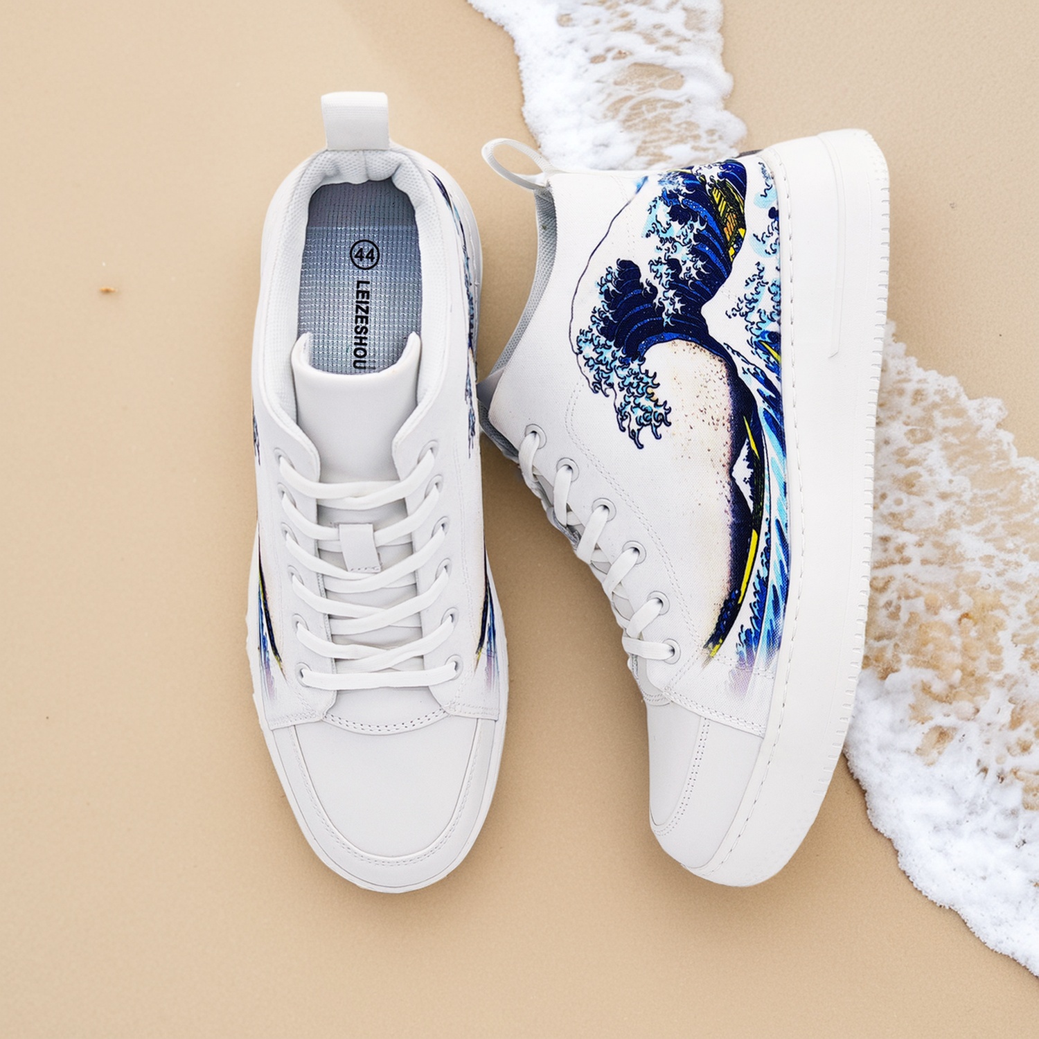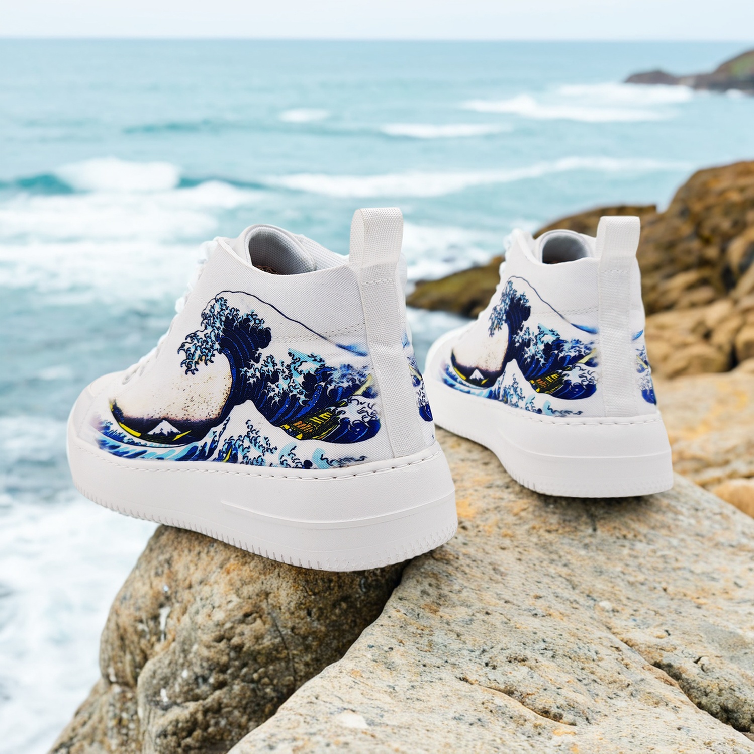 神奈川冲浪里休闲运动鞋帆布鞋手绘鞋情侣板鞋国潮百搭男女印花鞋
