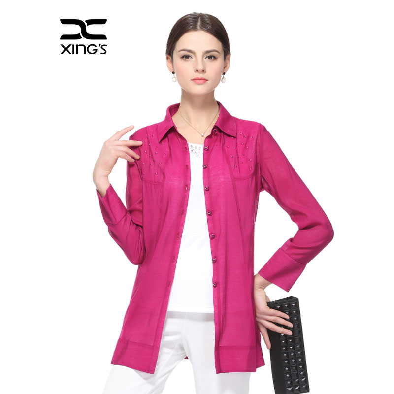 邢氏女装 新款中长款修身上衣大码衬衫女长袖纯色衬衣妈妈薄外套