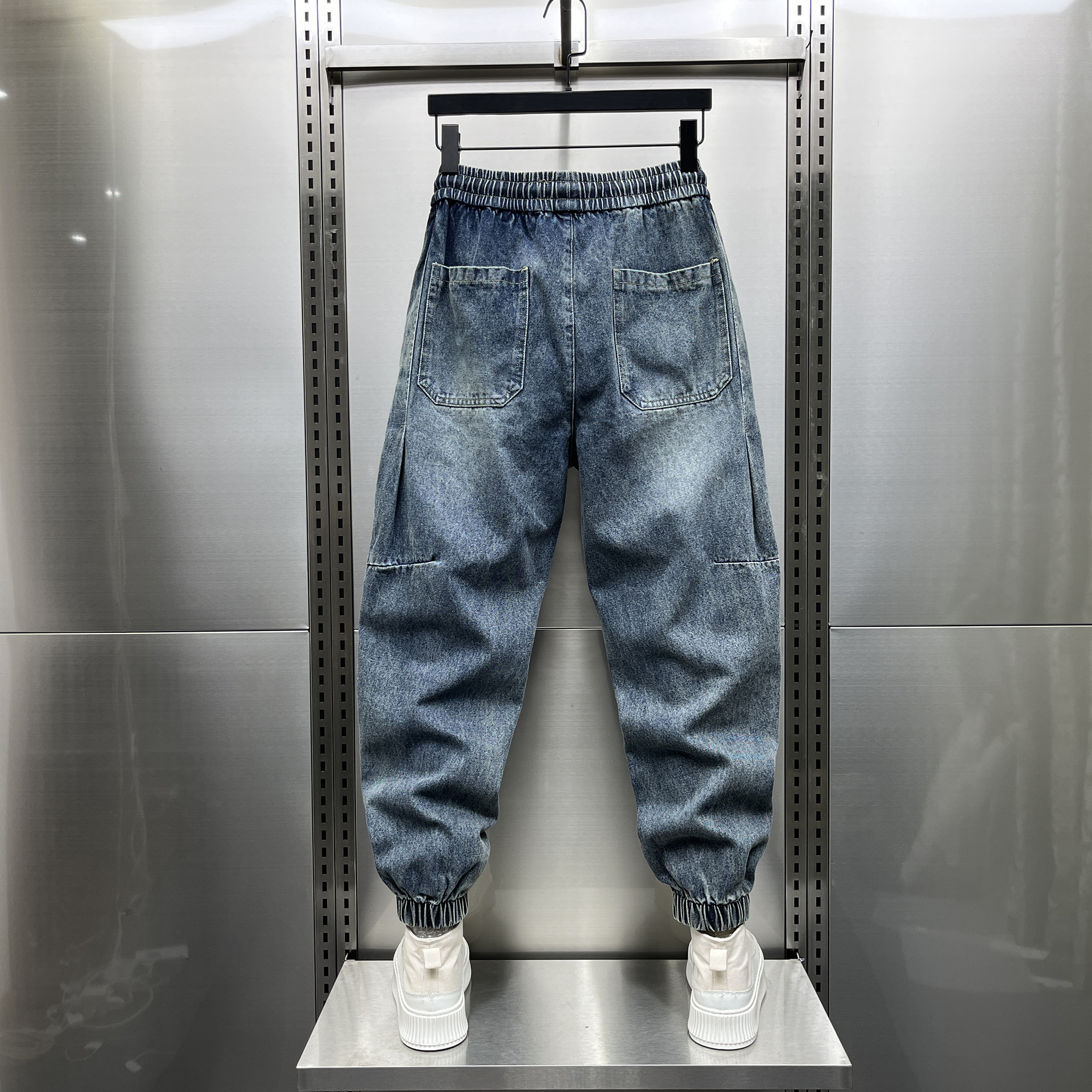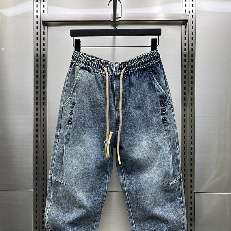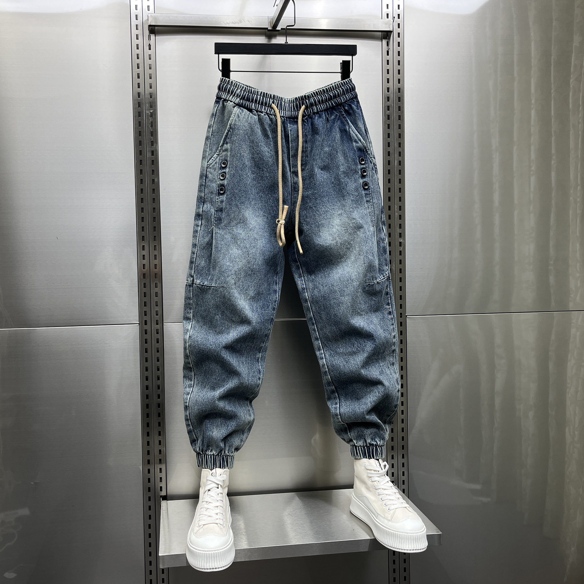 秋季新款纽扣装饰束脚牛仔裤男潮牌韩版修身小脚哈伦裤痞帅九分裤