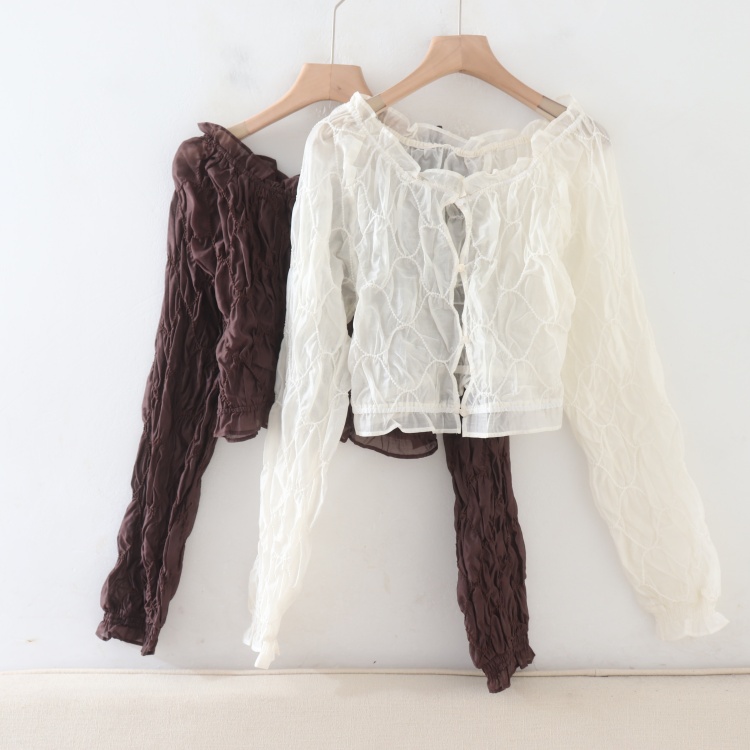 C11007日单天丝料新款花边单排扣微宽松女甜美气质短款长袖衬衫