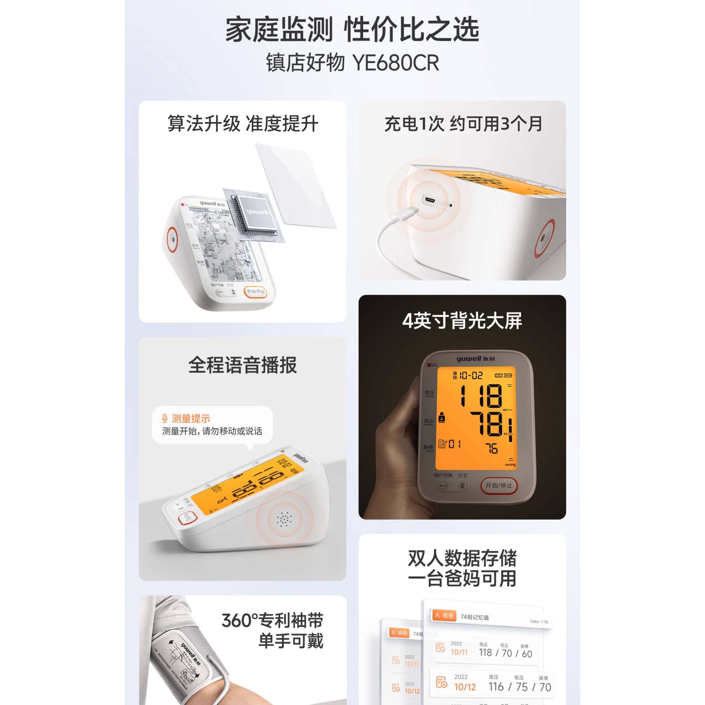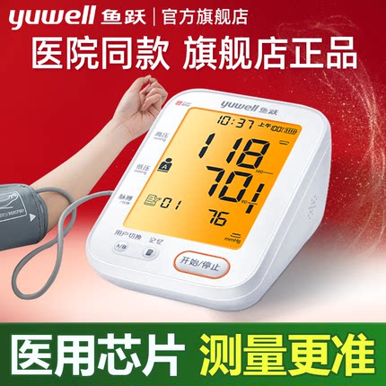 鱼跃医用上臂式电子血压计家用老人测血压测量仪全自动血压器正品