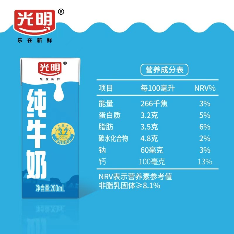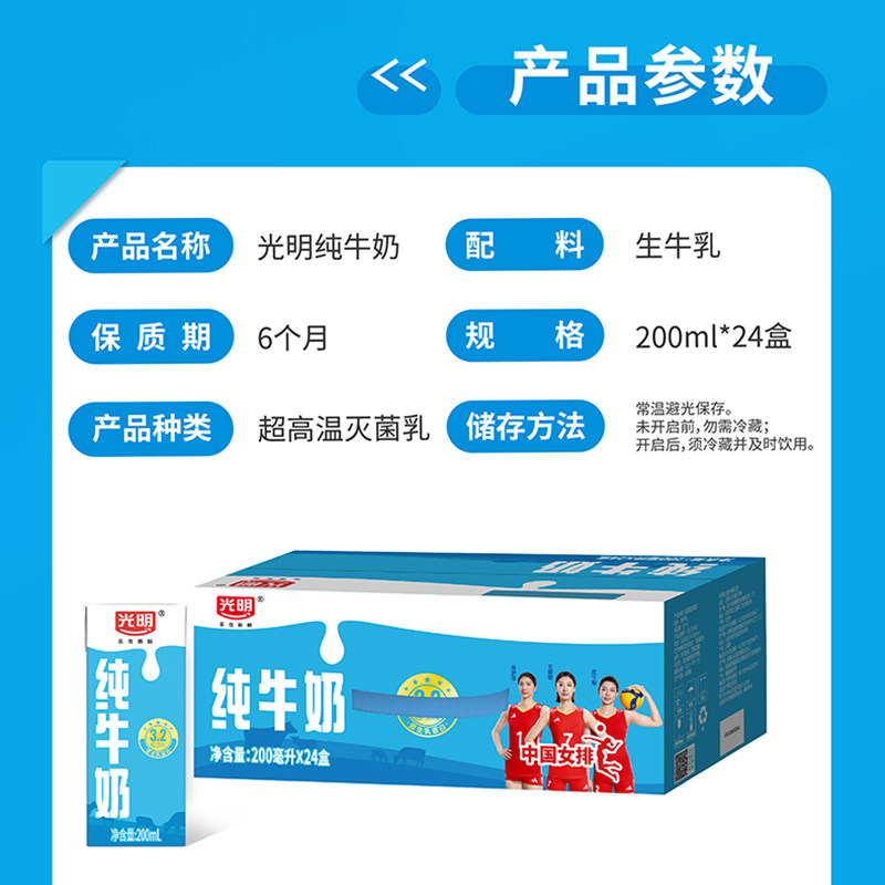 光明利乐砖纯牛奶200mlx24盒