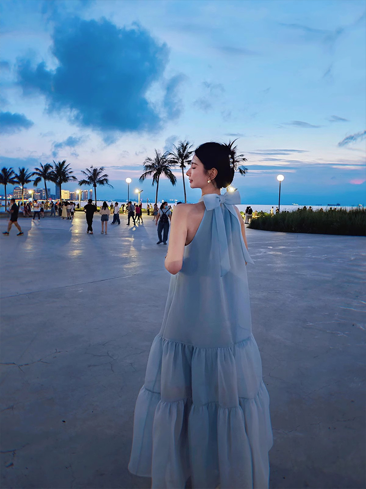 海滩亲子装三亚特别的沙滩海边度假明星同款母女装高端炸街连衣裙