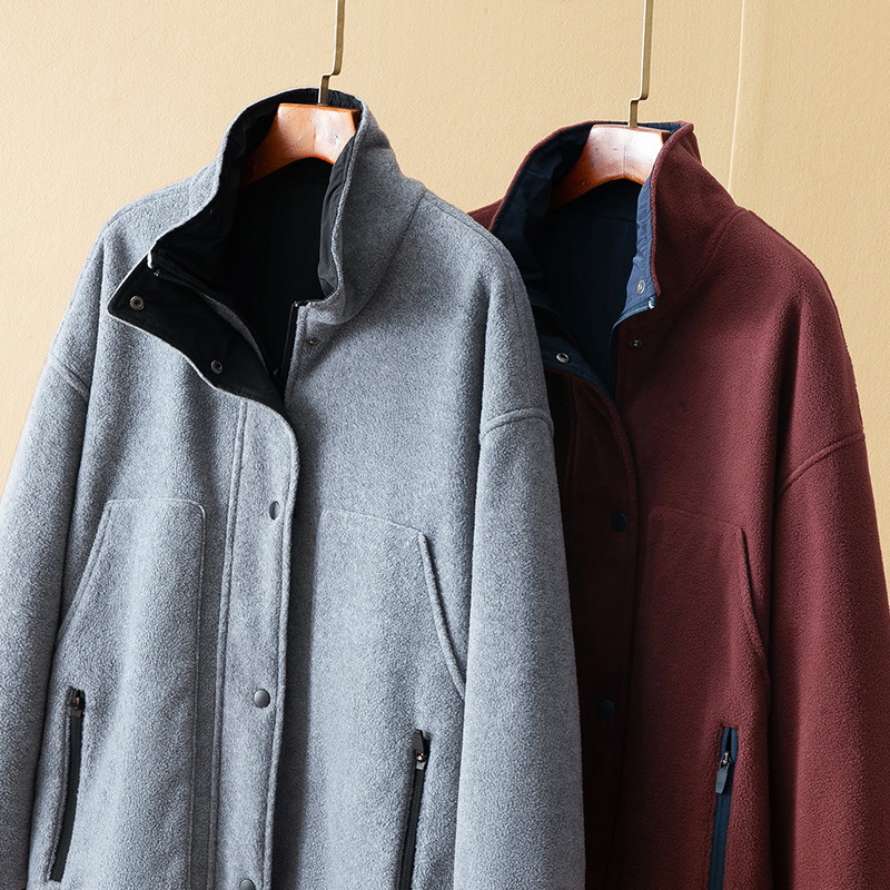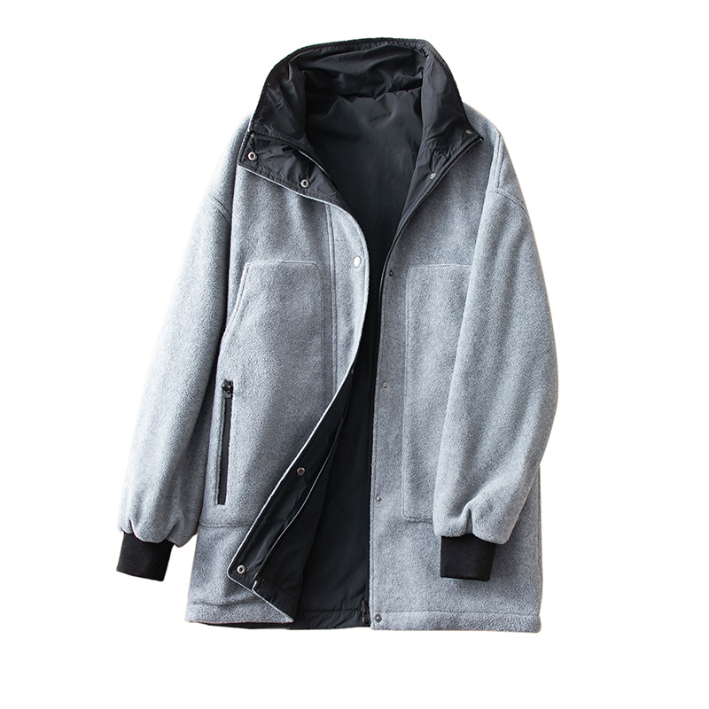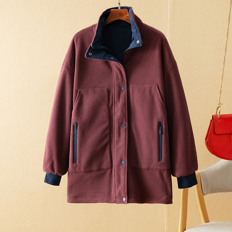 蛮文 品质日单 轻奢休闲 两面穿高保暖中长款立领摇粒绒外套46341