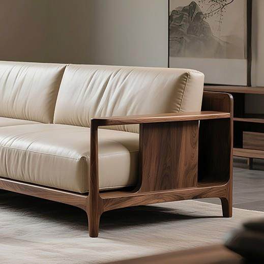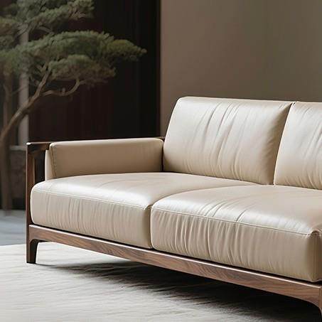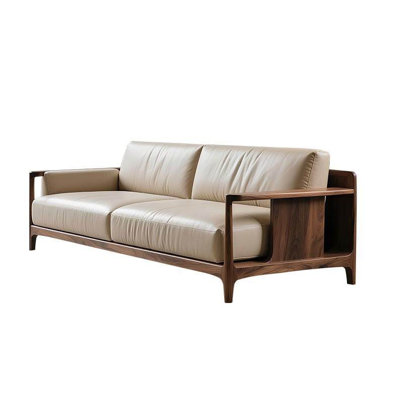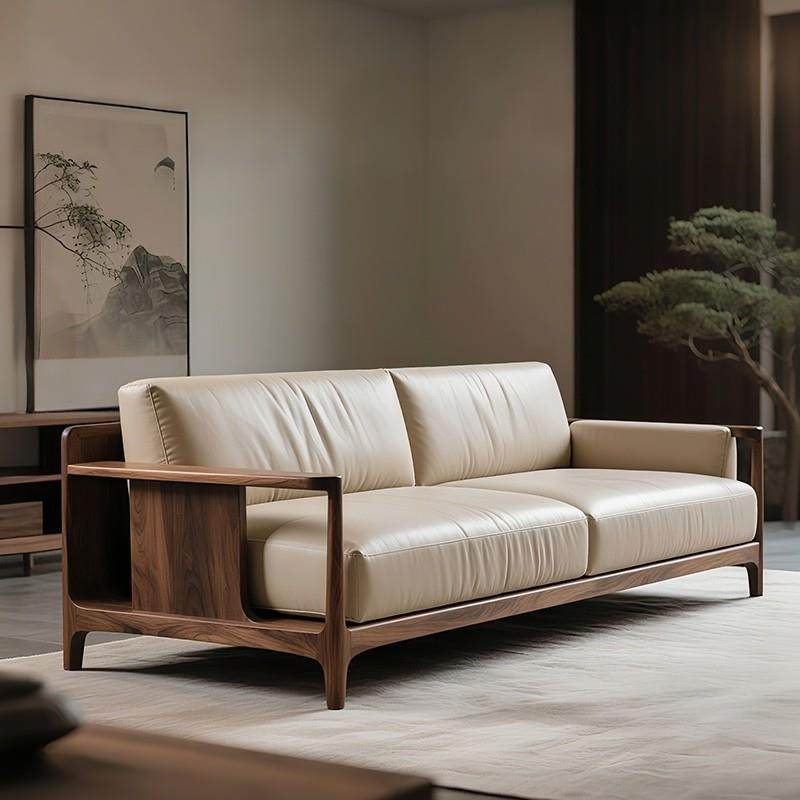新中式黑胡桃木真皮直排实木沙发办公休闲家用设计师新款三人位