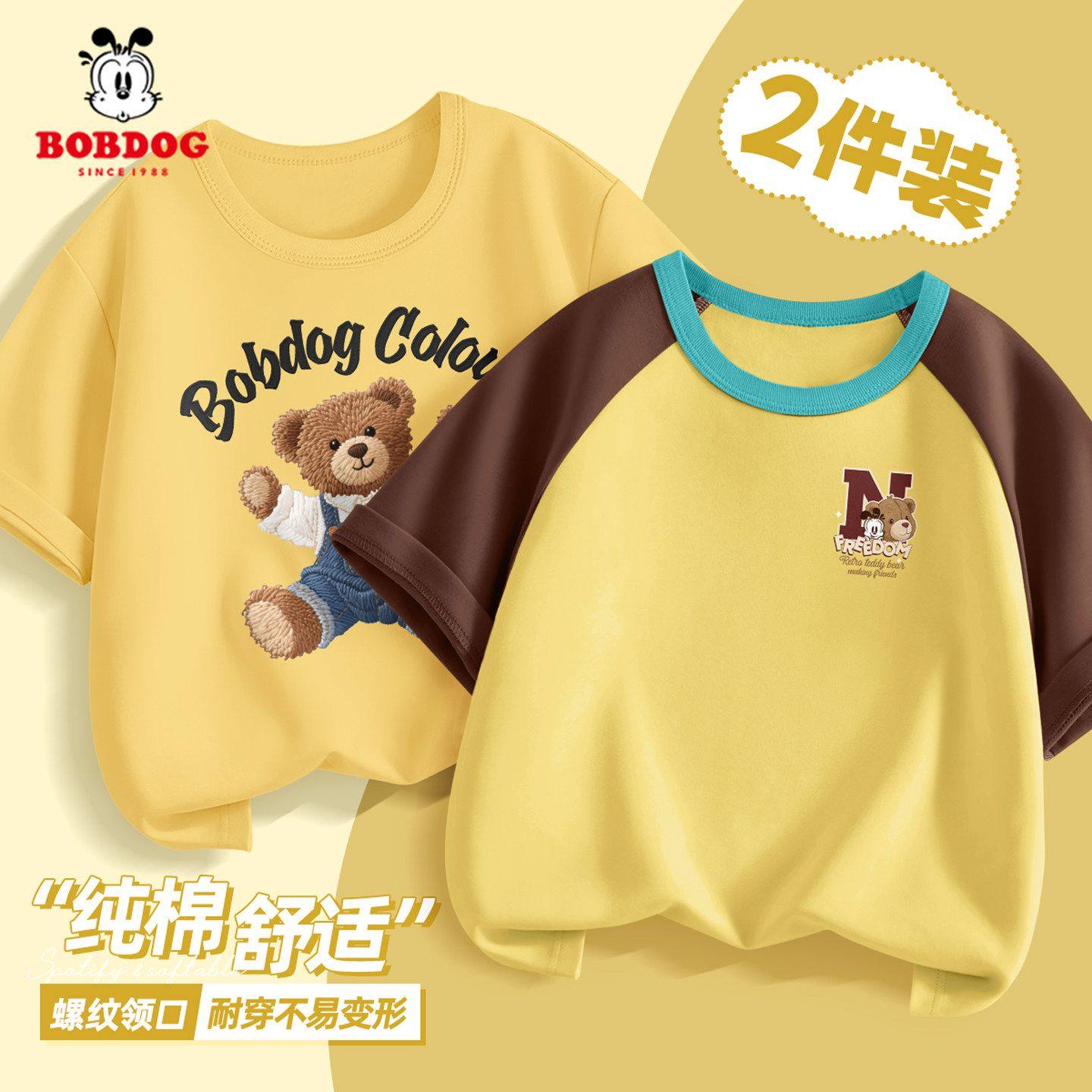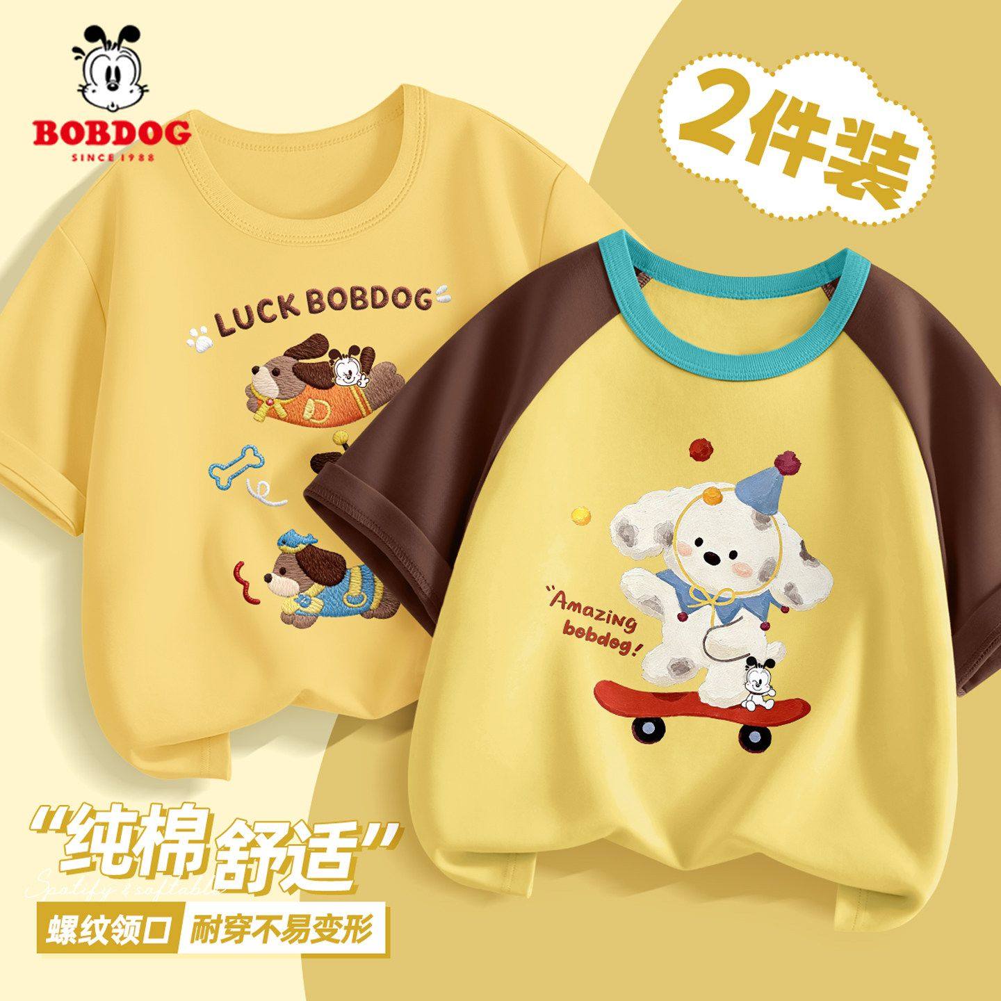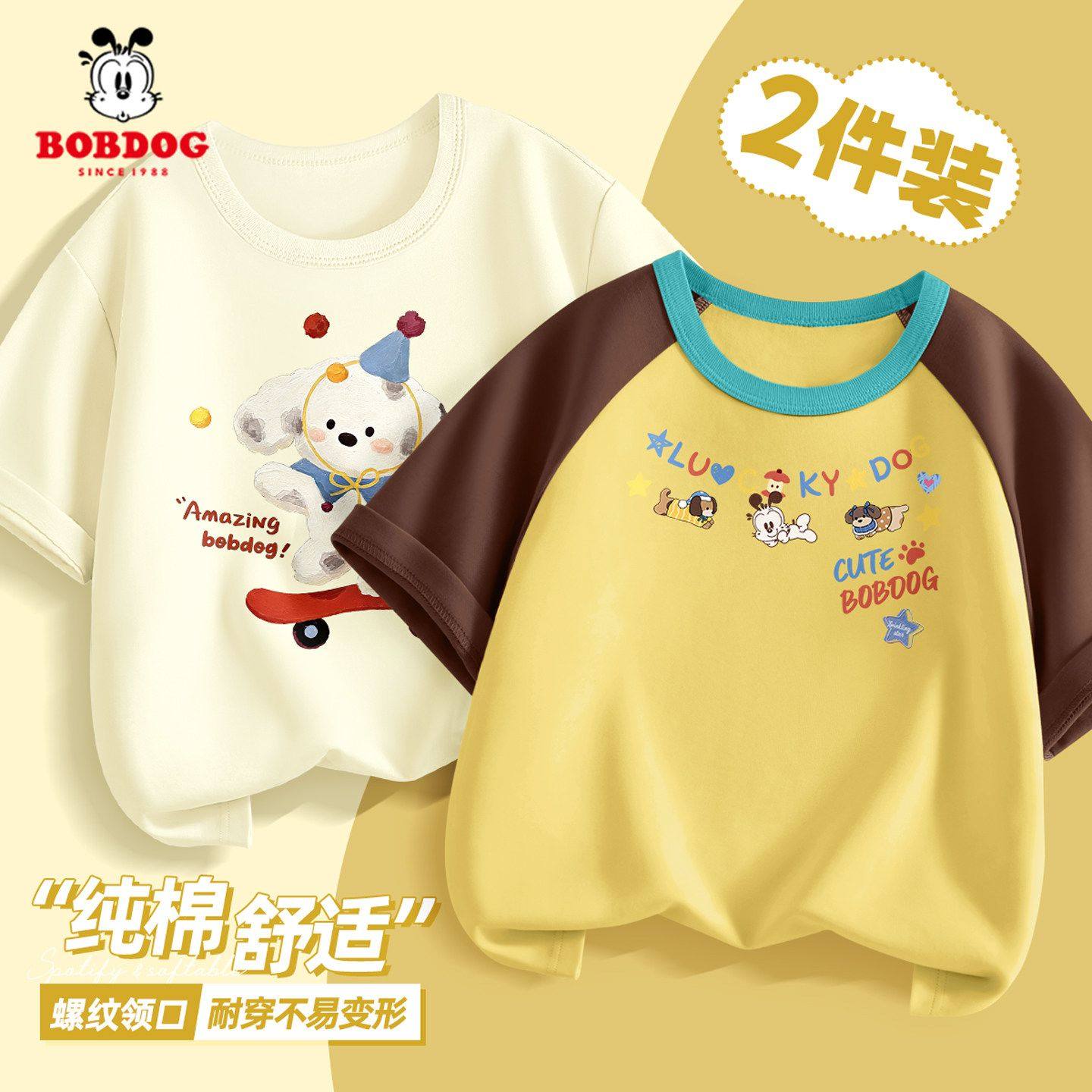 巴布豆男童夏季短袖t恤2026新款纯棉薄款中大童夏装卡通小狗衣服