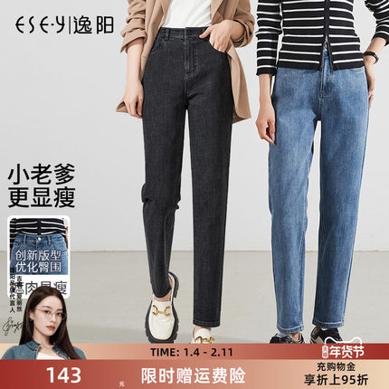 逸阳哈伦萝卜老爹裤2025秋季新款女士弹力显瘦宽松窄版直筒牛仔裤