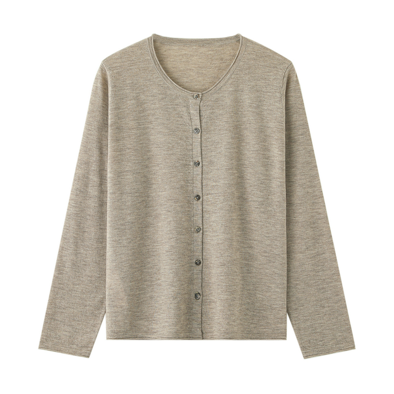 极细扬子纱开衫女圆领针织衫开衫超细100%羊毛衫极简风春秋外套