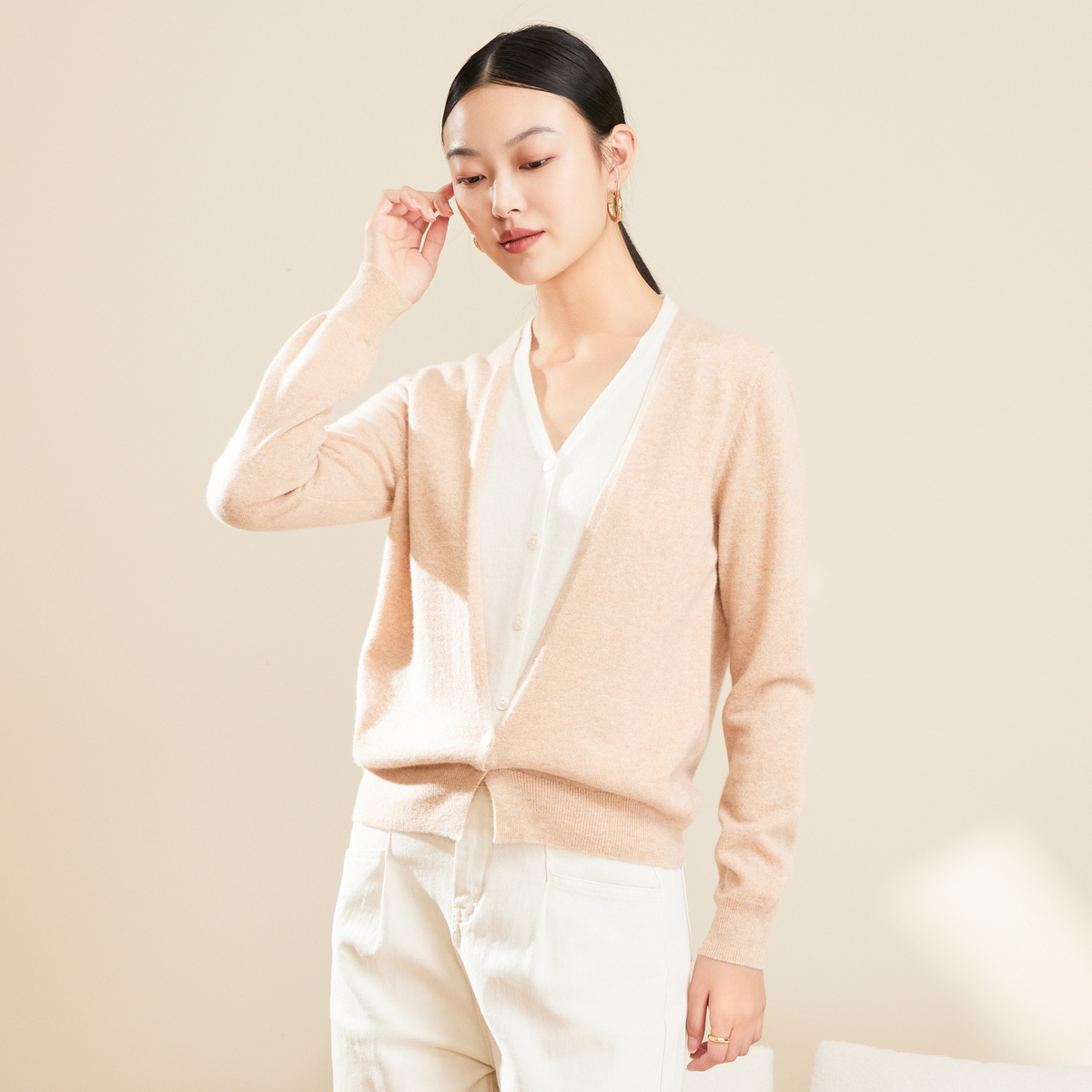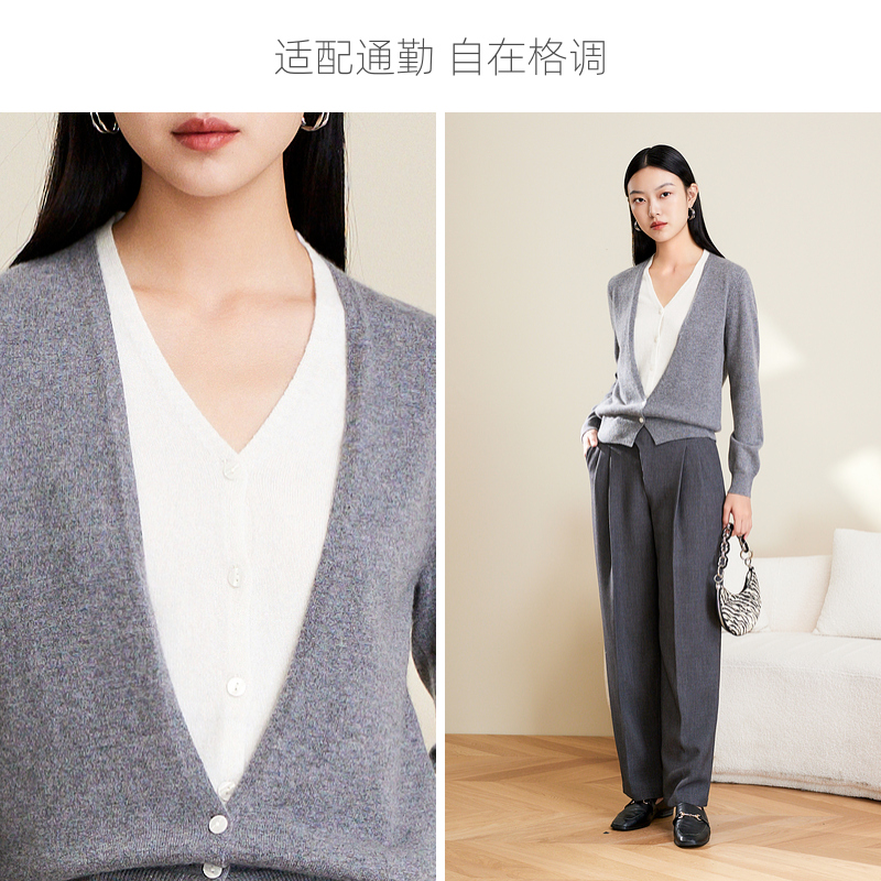 春竹秋冬新款100%山羊绒宽松保暖软糯风V领毛衣开衫羊绒衫外套女
