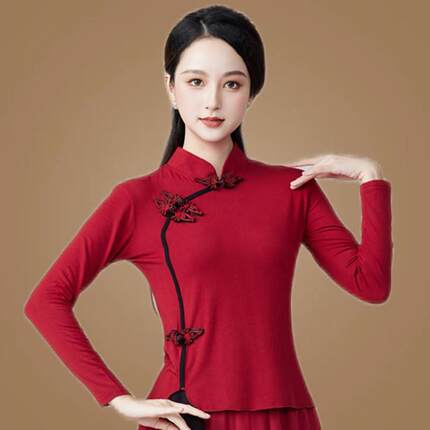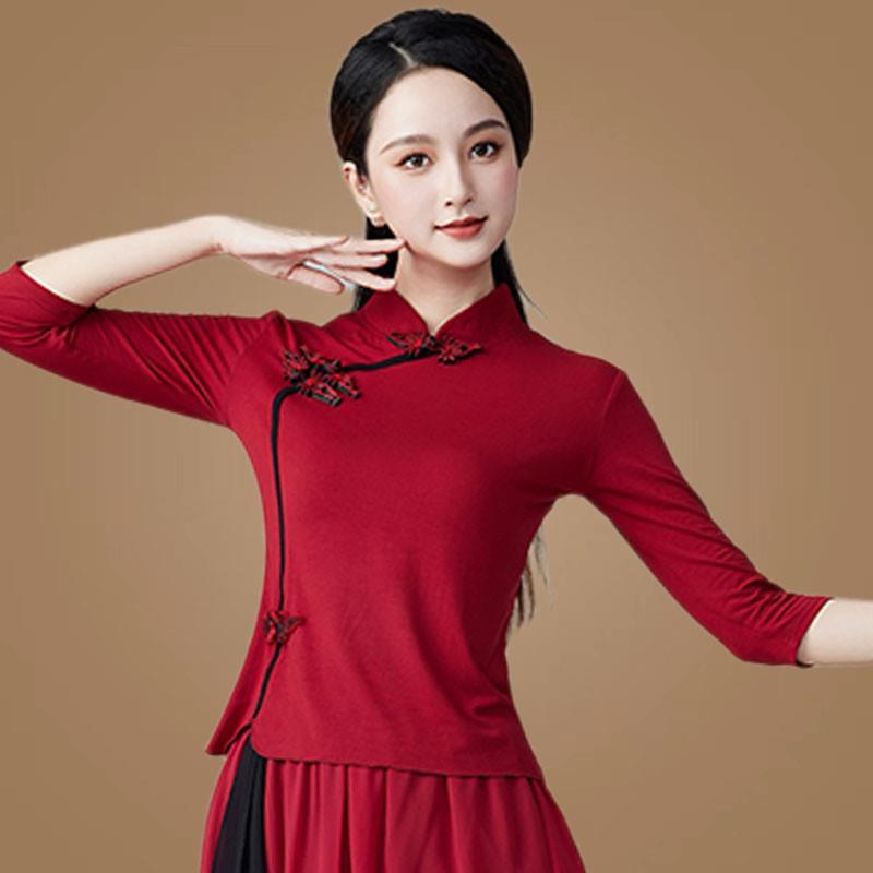 特价广场舞服装新款上衣莫代尔民族风舞蹈衣服琵琶立领跳舞表演出