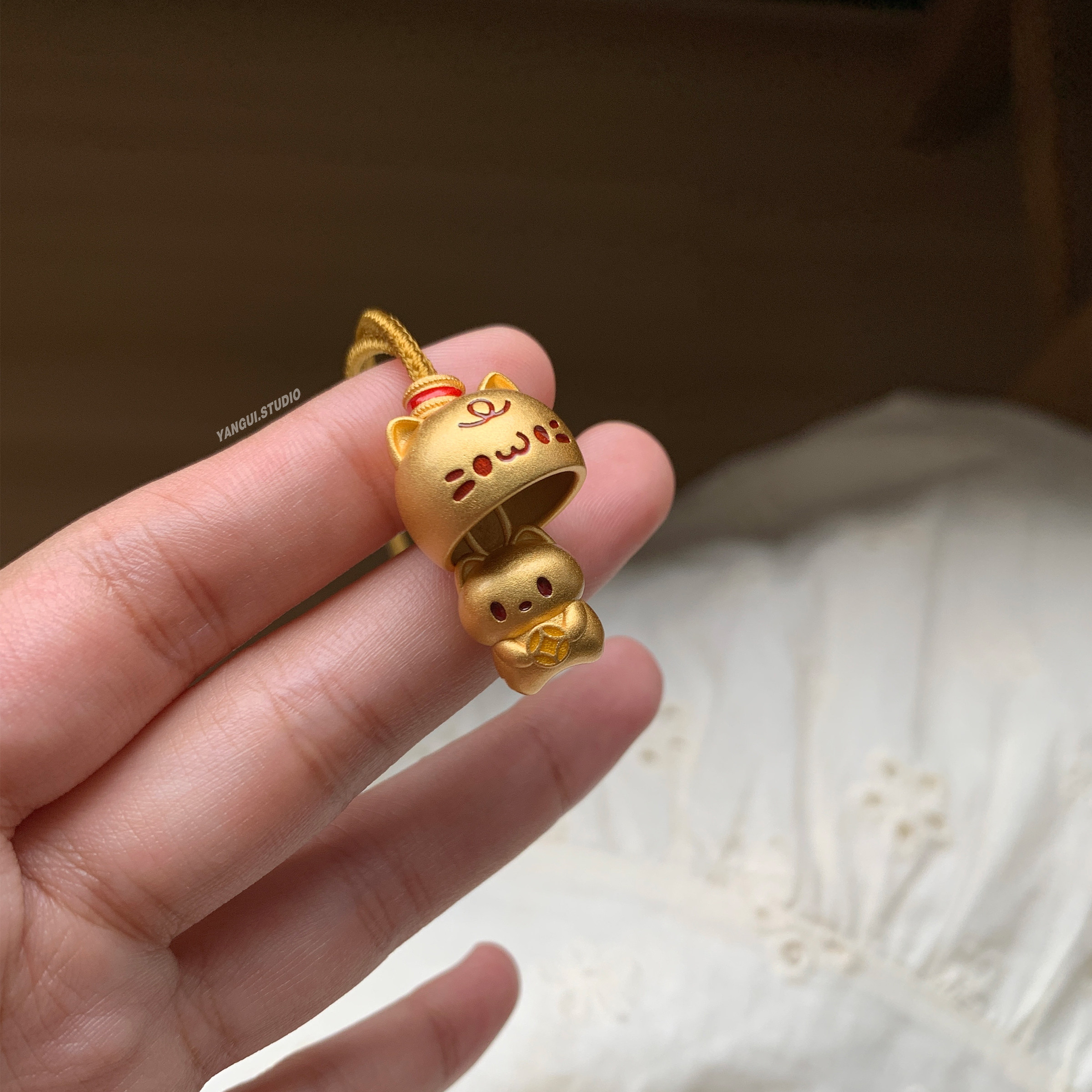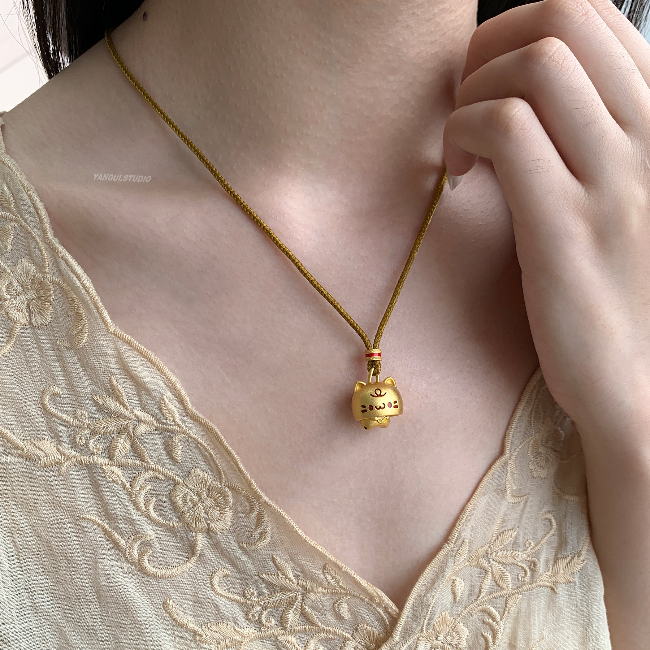Yangui燕归「躲猫猫」国风新中式足银999锁骨链可爱百搭编绳项链