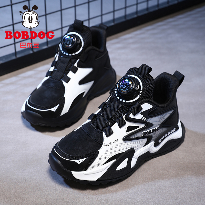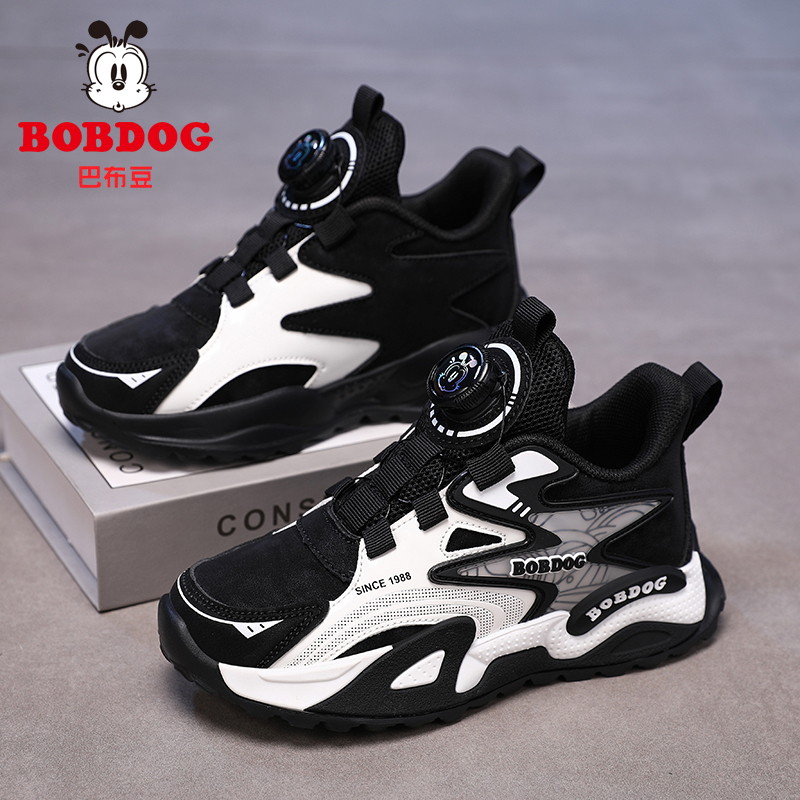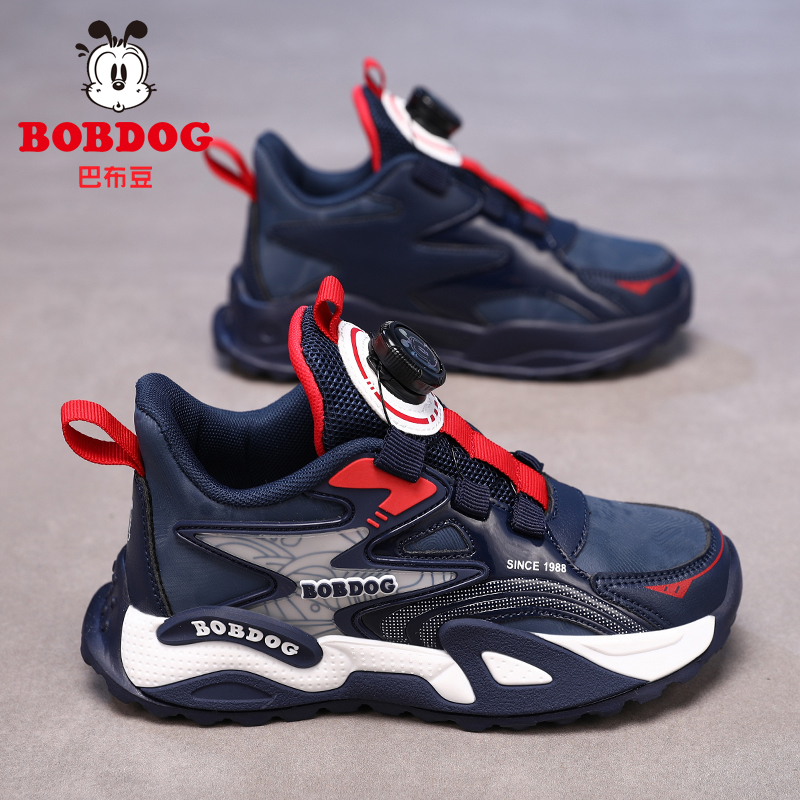 巴布豆童鞋男童运动鞋2025新款皮面中大童跑步鞋男孩儿童秋季鞋子