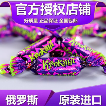网红俄罗斯原装进口KDV紫皮糖碎杏仁夹心巧克力酥脆年货婚庆喜糖