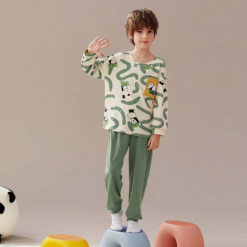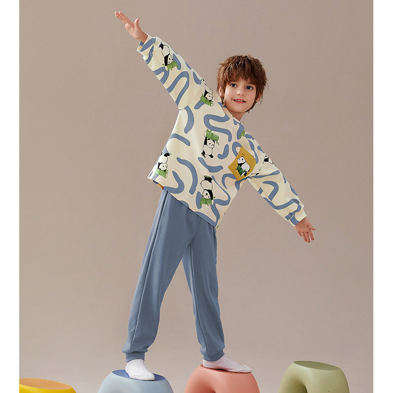 芬腾男孩儿童纯棉长袖睡衣春秋季