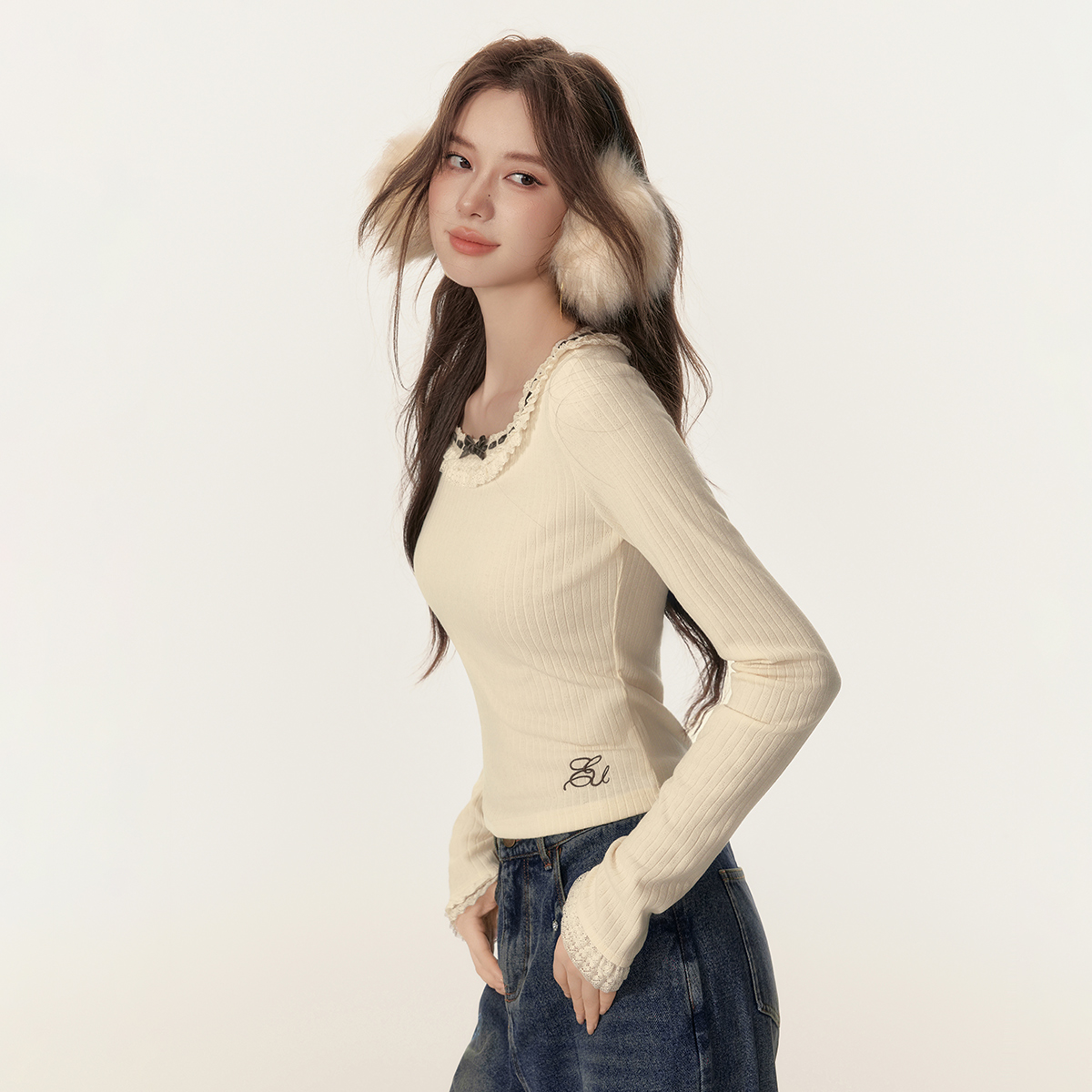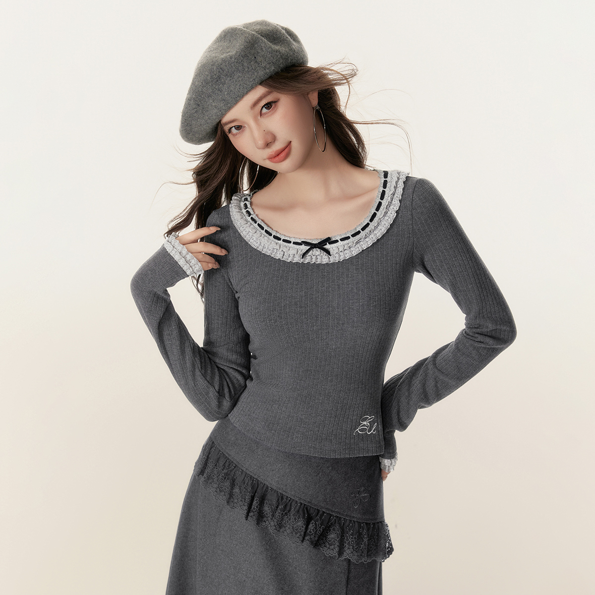 EPTISON芭蕾少女风针织衫2025冬季新款修身氛围感显身材保暖上衣