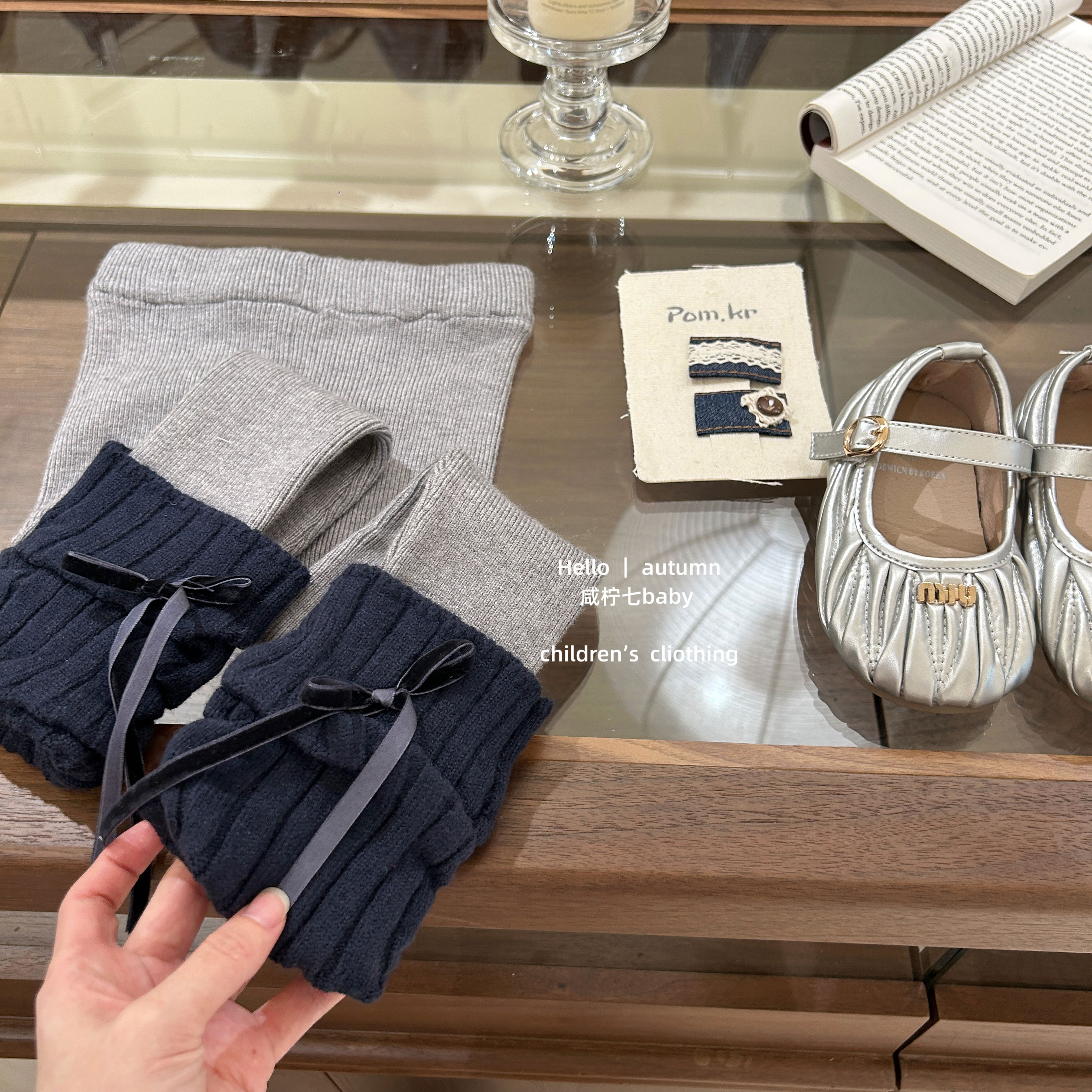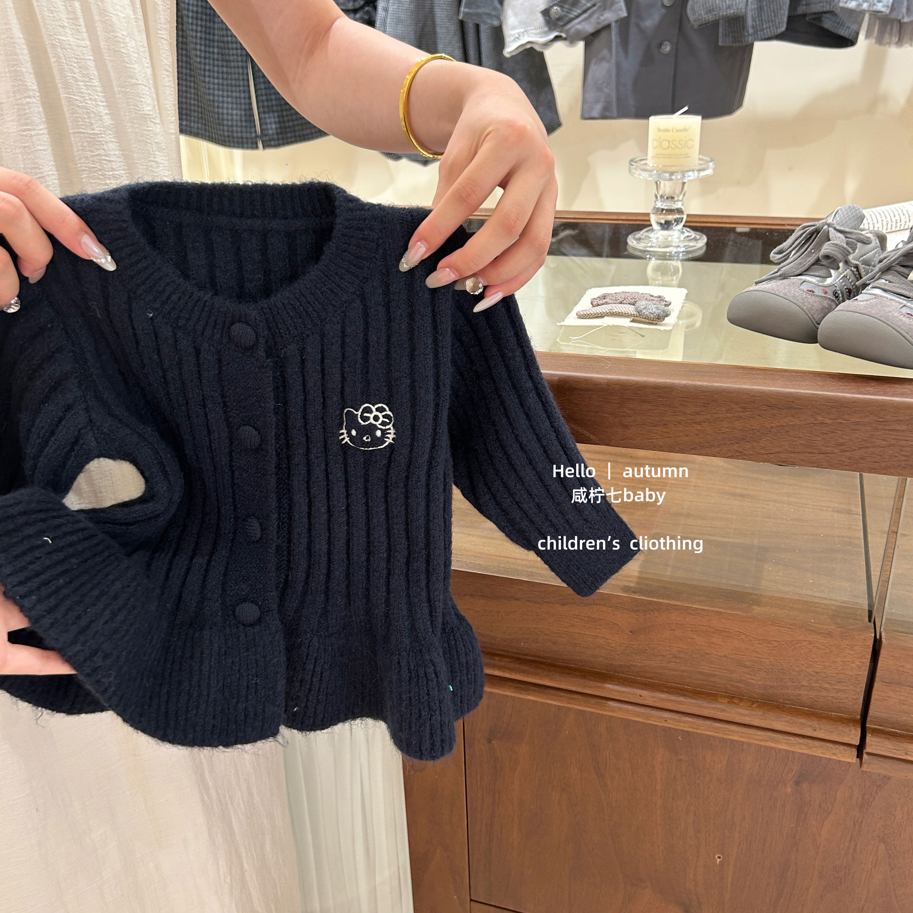 【咸柠七】女童原创秋季套装韩系木耳边kt猫毛衣开衫洋气两件套