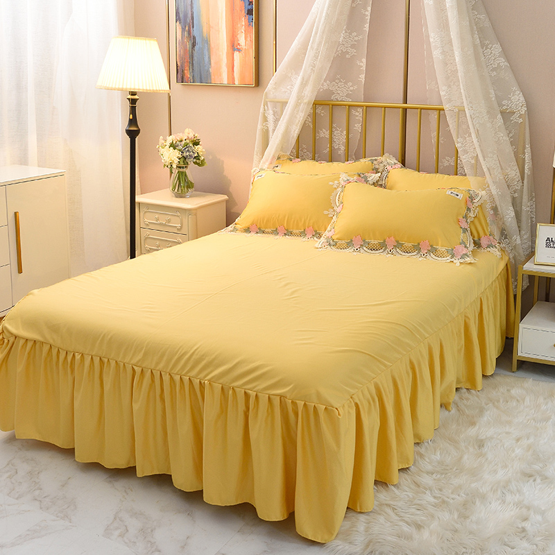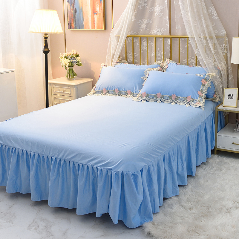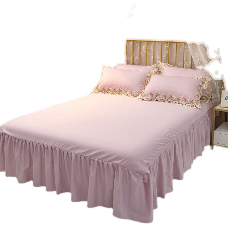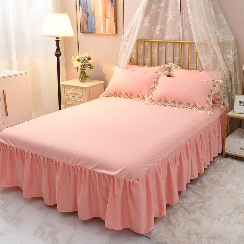 床裙床罩单件床套防滑固定纯色蕾丝真丝保护套床单带花边纯色遮丑