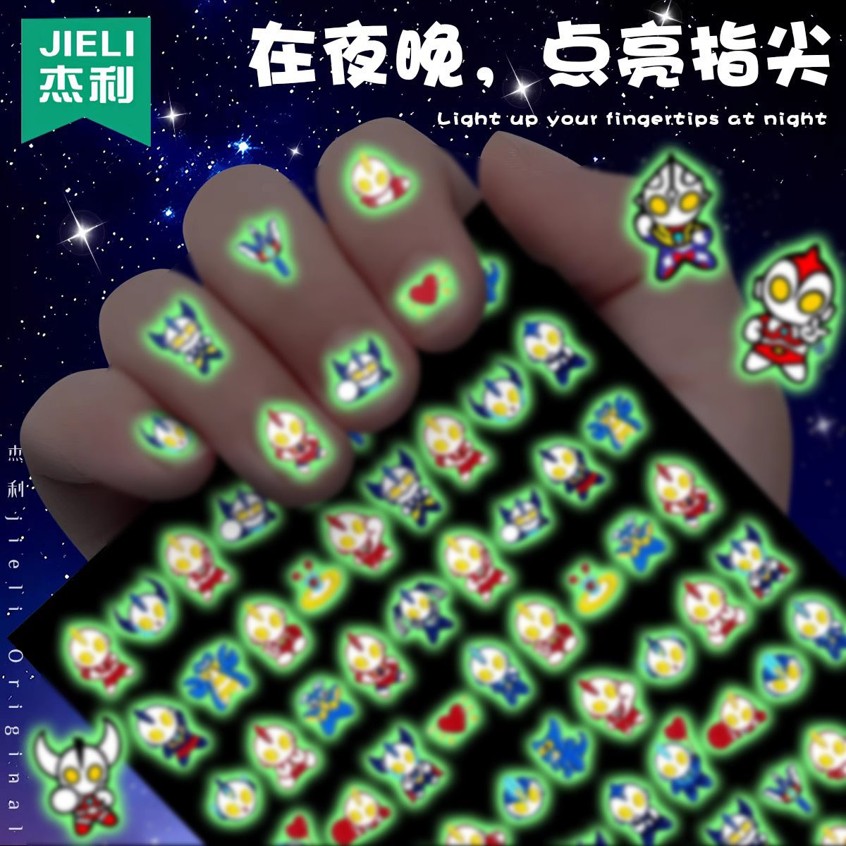 奥凸曼5D夜光浮雕指甲贴纸