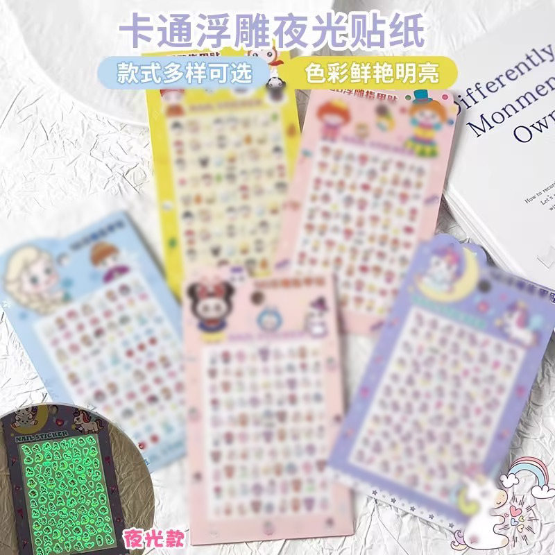 奥凸曼5D夜光浮雕指甲贴纸儿童卡通发光指甲贴胶女孩男孩美甲贴片无味小朋友小孩荧光图案生日礼物小饰品凹凸