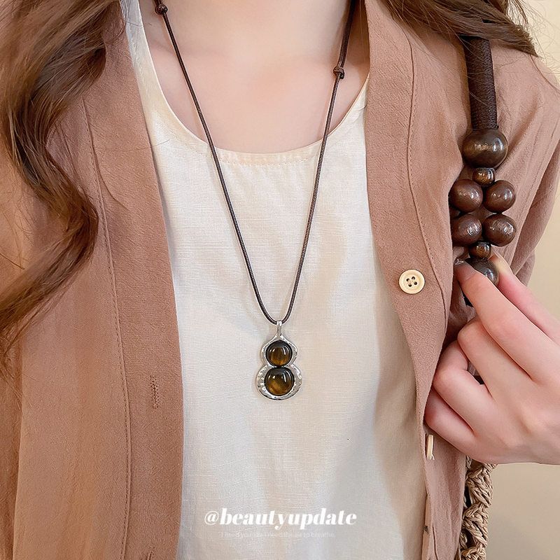 复古虎眼石圆形葫芦吊坠项链民族风锁骨链时尚小众设计感毛衣链女